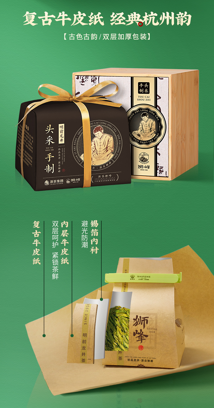 【2026年新茶现货】狮峰丨龙井茶 茗狮醒春优手手工纸包 明前特级 绿茶 250g 礼盒装