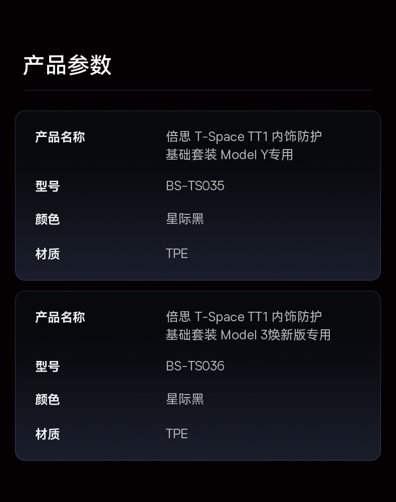 【十一专享】倍思 T-Space TT1 特斯拉内饰防护基础套装 焕新3/Model Y