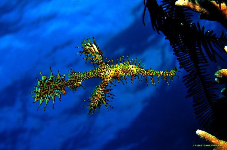 Airplane Wreck这里的水底沉了一架赛斯纳小飞机,潜水员们可以钻到驾驶室内拍照,很有趣的一个潜点!在这里也能看到长相奇特的毕加索海蛾、蝎子鱼、石头鱼和列队飞行的鱿鱼。还有另外一个惊喜,这里是各种小东西的天地,海龙、鬼龙、白色的铅笔兔、狮子鱼小号、超大号石头鱼、透明虾、小丑虾、大树林一样鹿角珊瑚、糖果蟹(candy crab)、小鱿鱼、粉色毛蟹(ba ba)、黑白条纹的小蟹、透明虾、红色的虾、壳上有紫色点的小蟹(porcelain crab)、蜘蛛蟹、白色章鱼、鸭嘴虾(palaemonid shrimps),红虾、舞娘、猫鱼(cat fish)……
