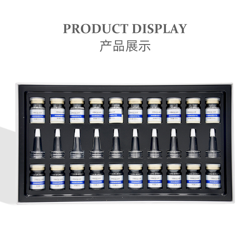 使用方法:洁肤后,润肤前使用,将冻干粉和溶媒液混合溶解后,取适量于肌肤上,轻柔按摩至吸收,也可以加入仪器使用。