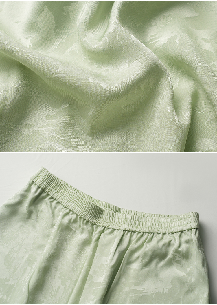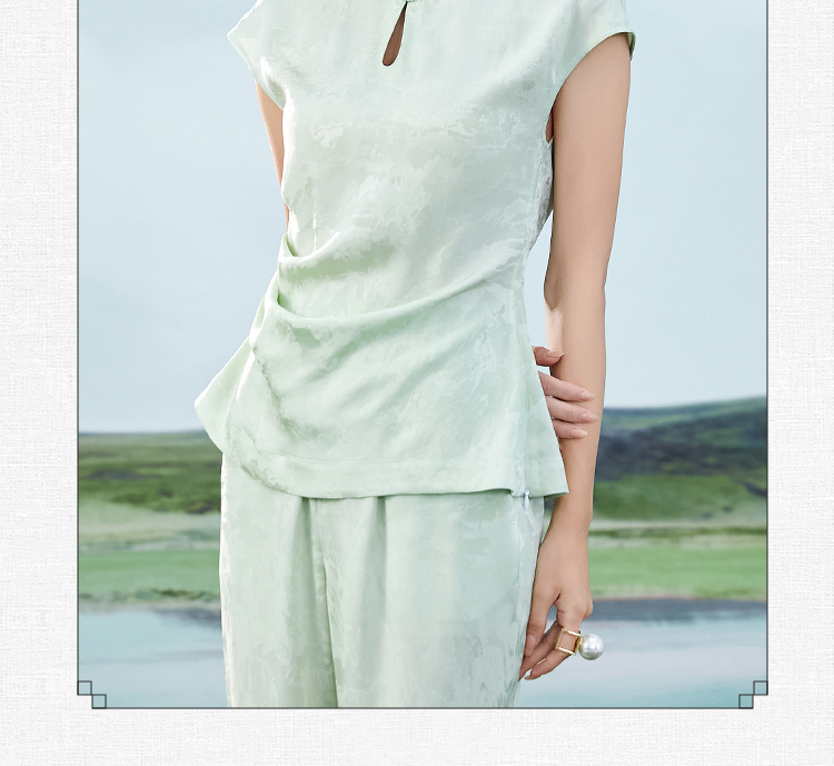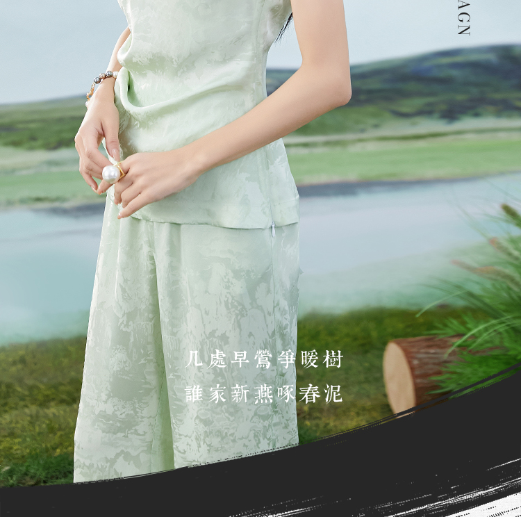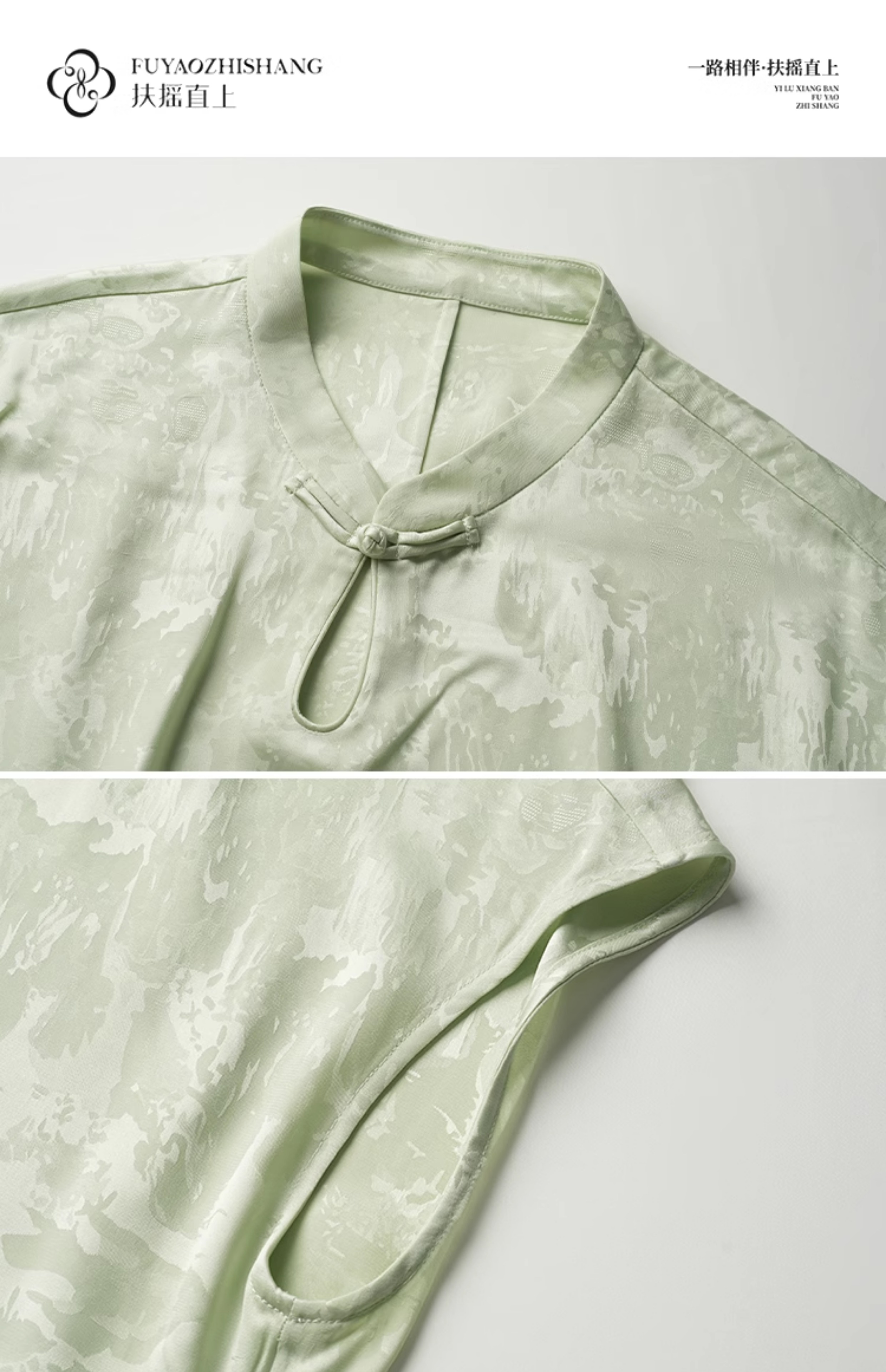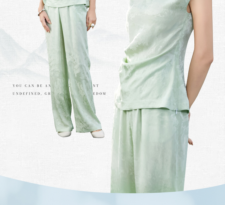 FUYAO扶摇 绿色衬衫阔腿裤两件套女夏季新款盐系轻熟国风茶服套装
