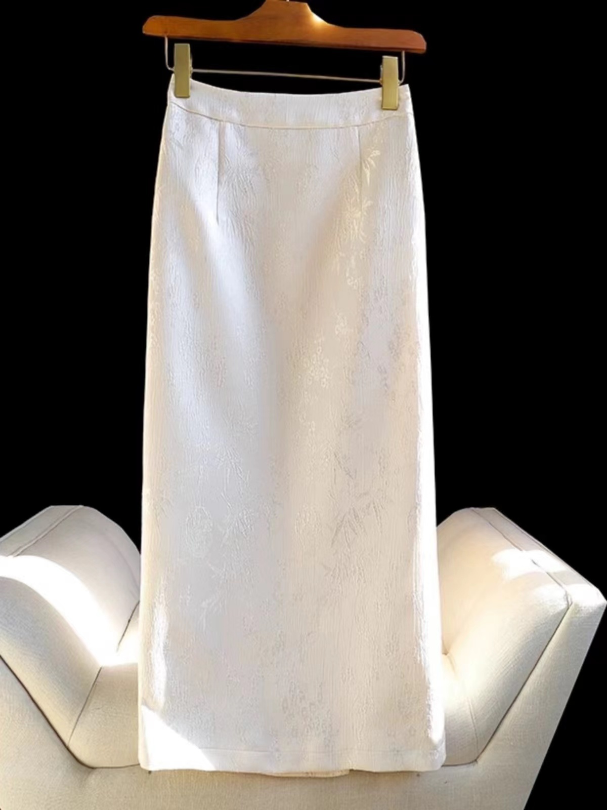黑色改良新中式国风盘扣包臀裙秋冬新款复古提花高腰显瘦半身裙女_ym