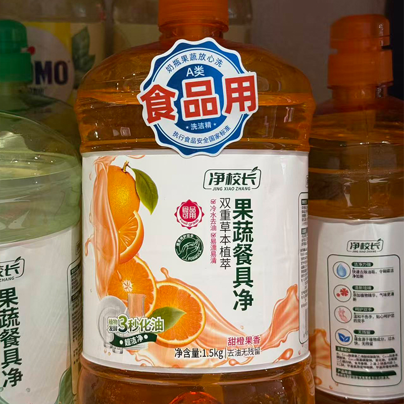 净校长双重草本植萃 果蔬餐具净 清新山茶花/甜橙果香 1.5kg/瓶