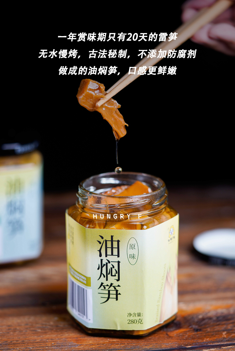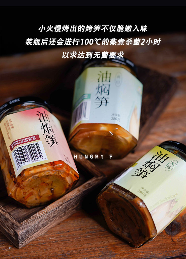 一年赏味期只有20天的雷笋,因为是小火慢烤和100℃蒸煮杀菌的,装瓶时达到无菌标准,所以即使没有添加防腐剂,油焖笋在未开封的情况下也可以有长达12个月的保质期哦!常温放就行,适合囤囤!