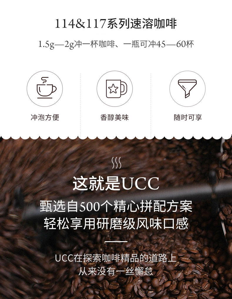 ucc黑咖啡117/114速溶咖啡悠诗诗职人咖啡无蔗糖咖啡粉健身辅助