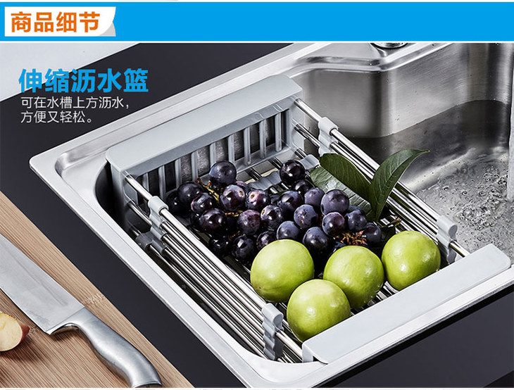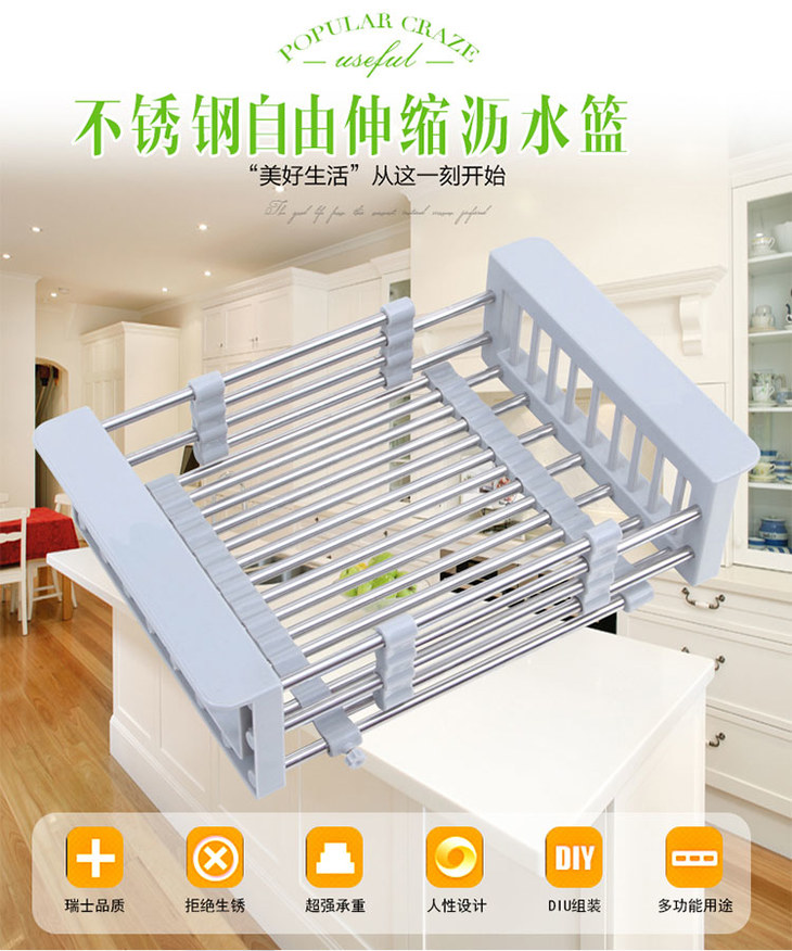 【日式简约 可伸缩沥水篮】304不锈钢 厨房沥水篮洗碗收纳篮,