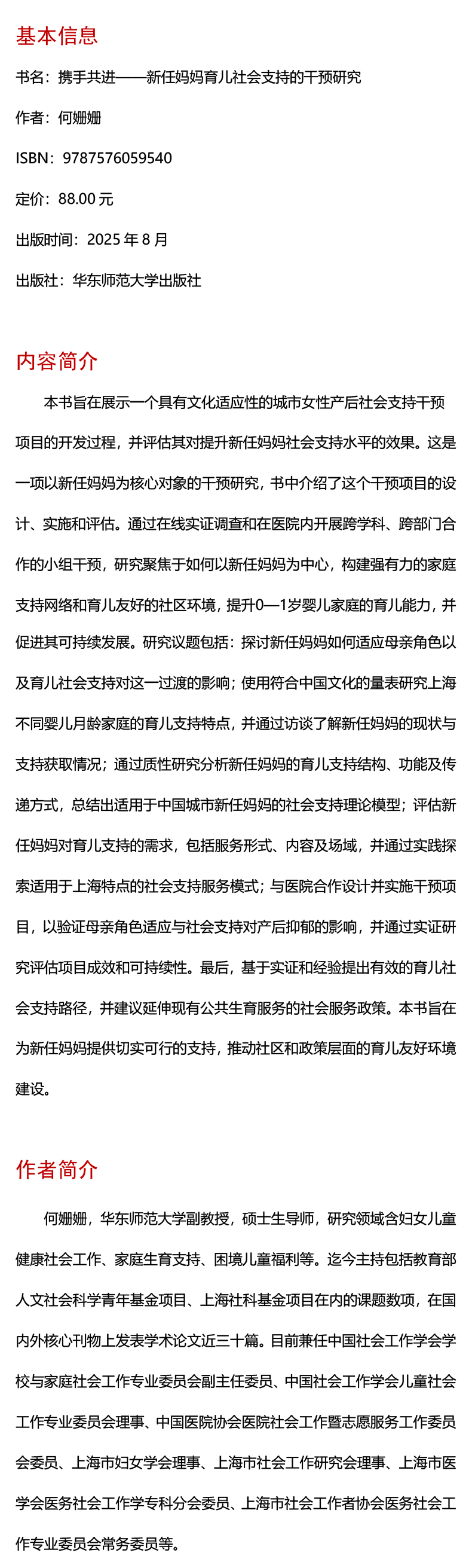 携手共进 新任妈妈育儿社会支持的干预研究 何姗姗 女性产后社会支持