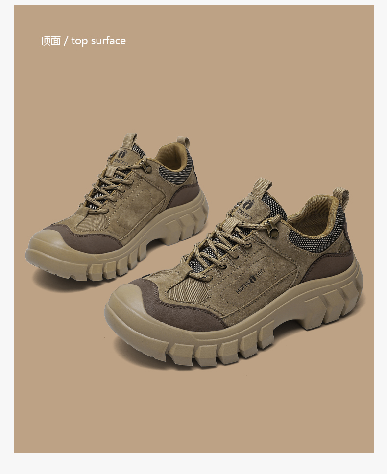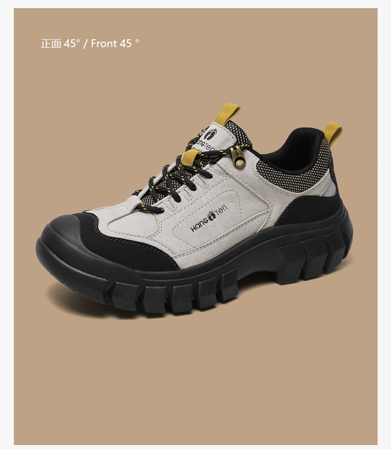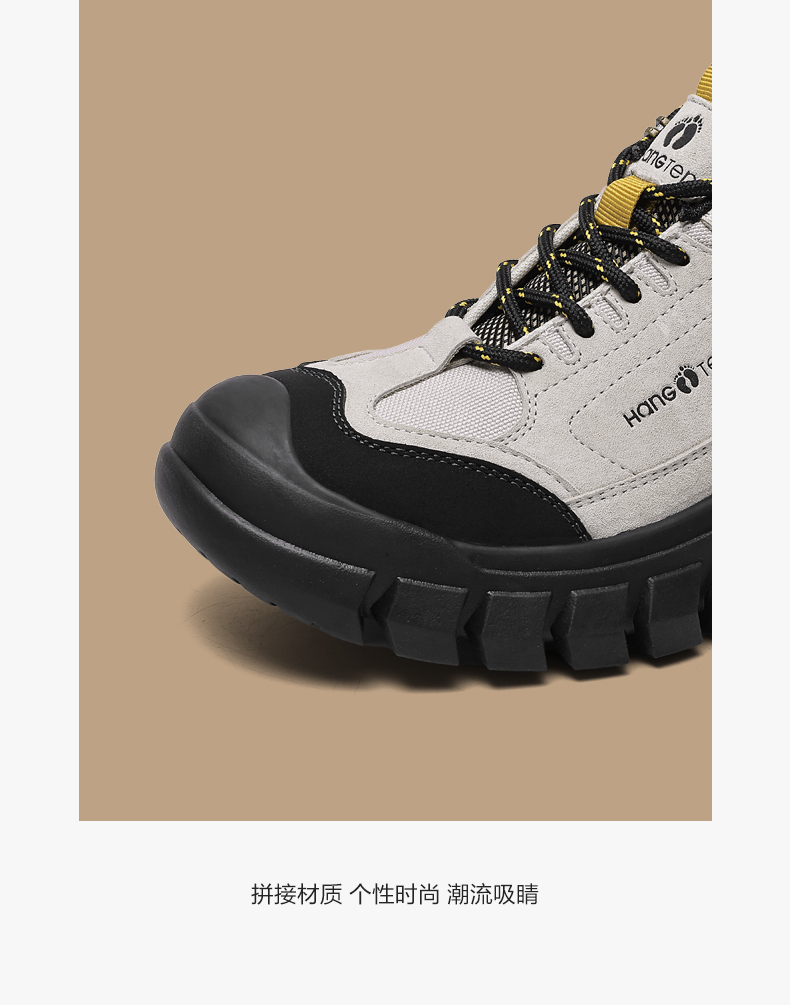 HANGTEN欢腾户外登山鞋女新款厚底防滑徒步潮流百搭户外真皮登山鞋F5213008AD