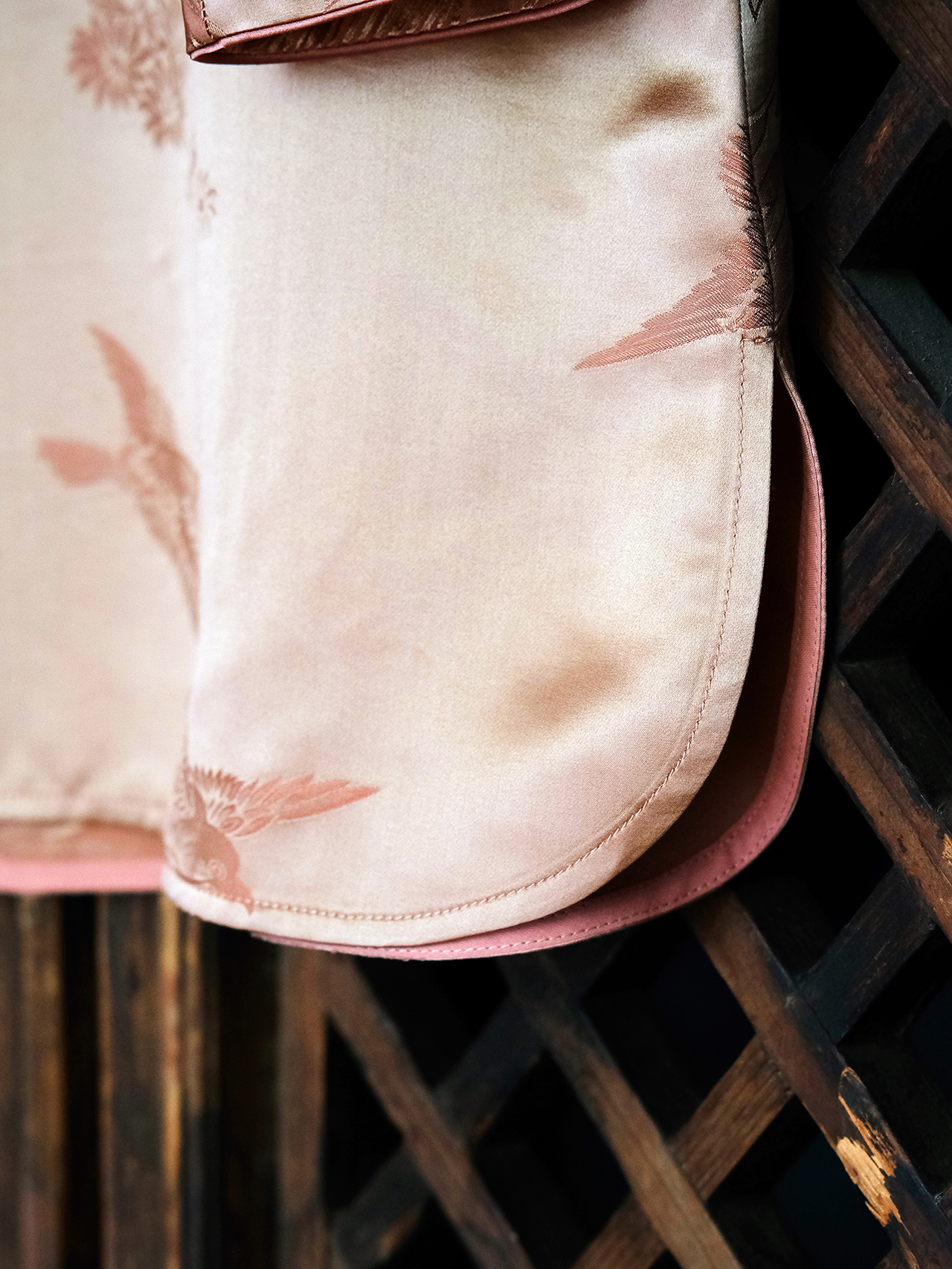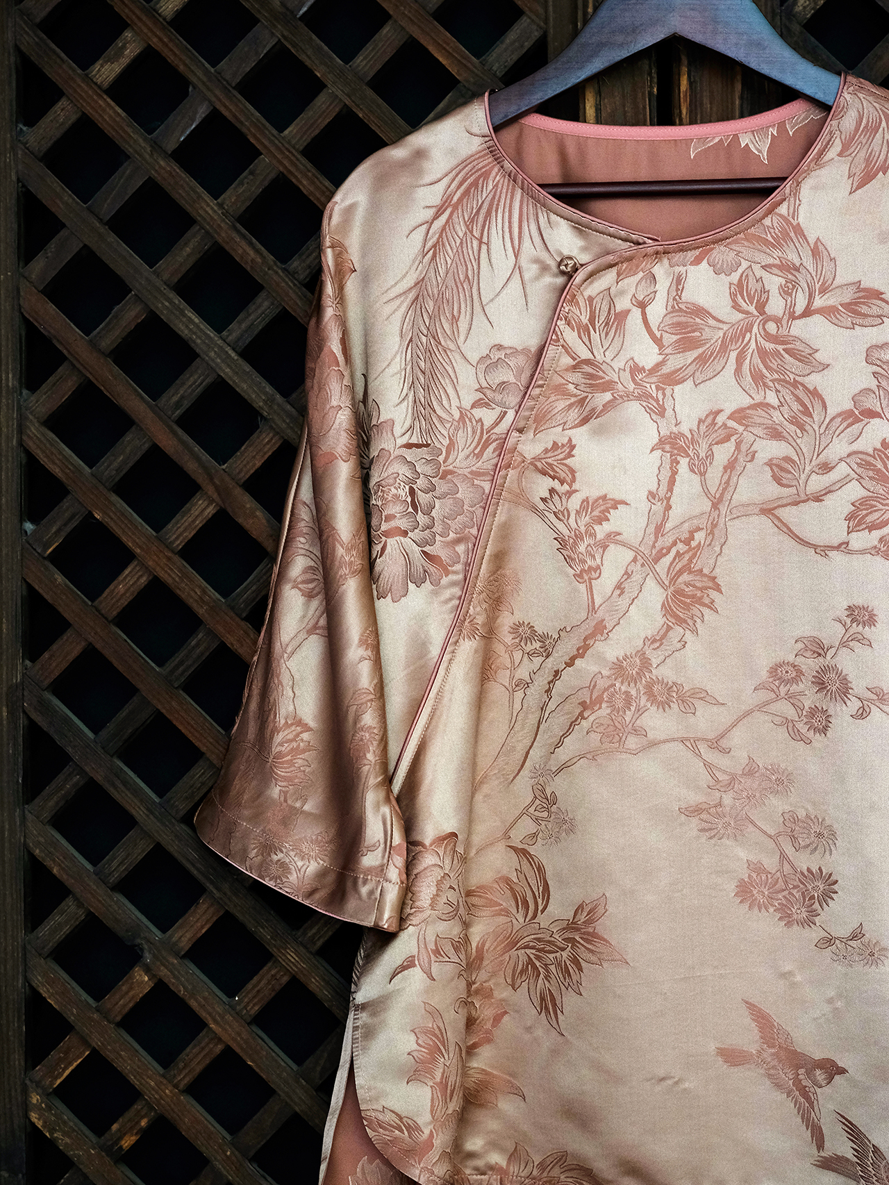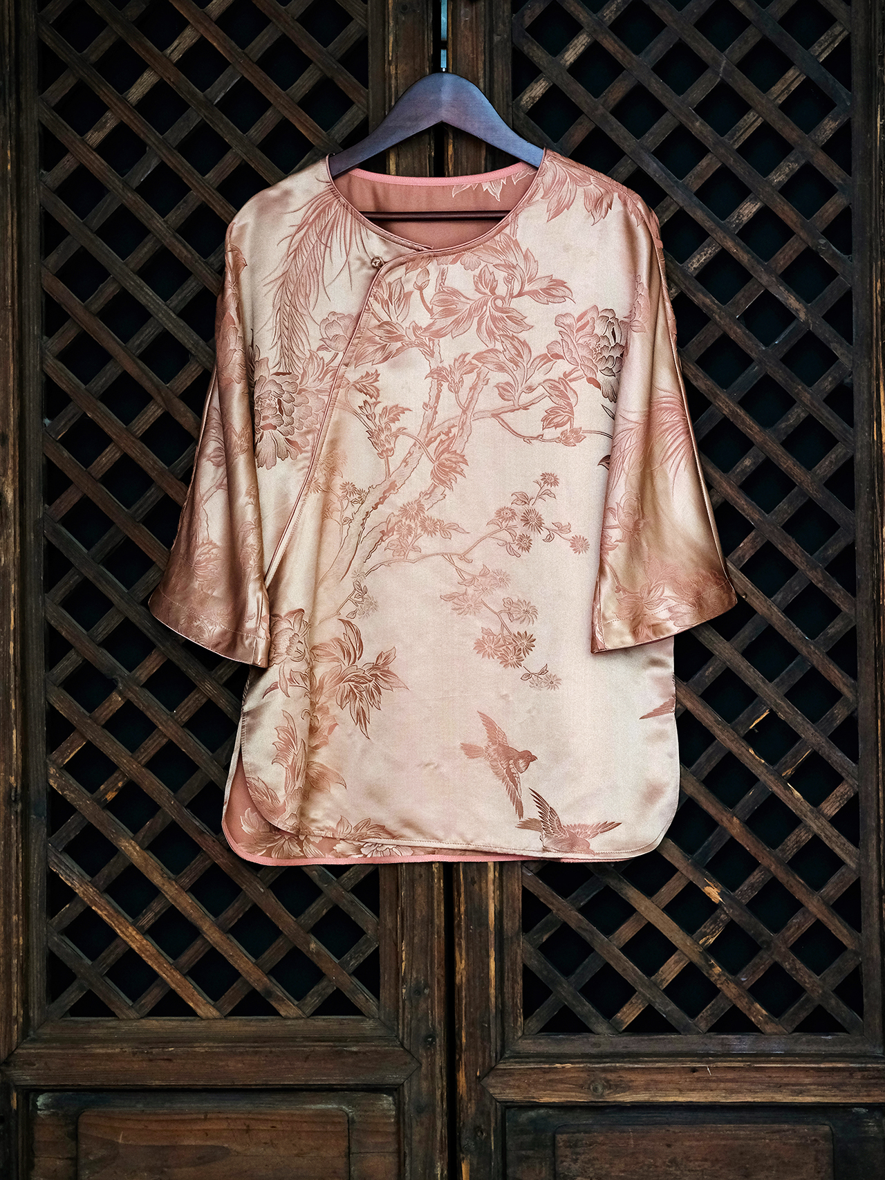 盛唐婧| 新中式老缎圆领斜襟七分袖上衣-粉色