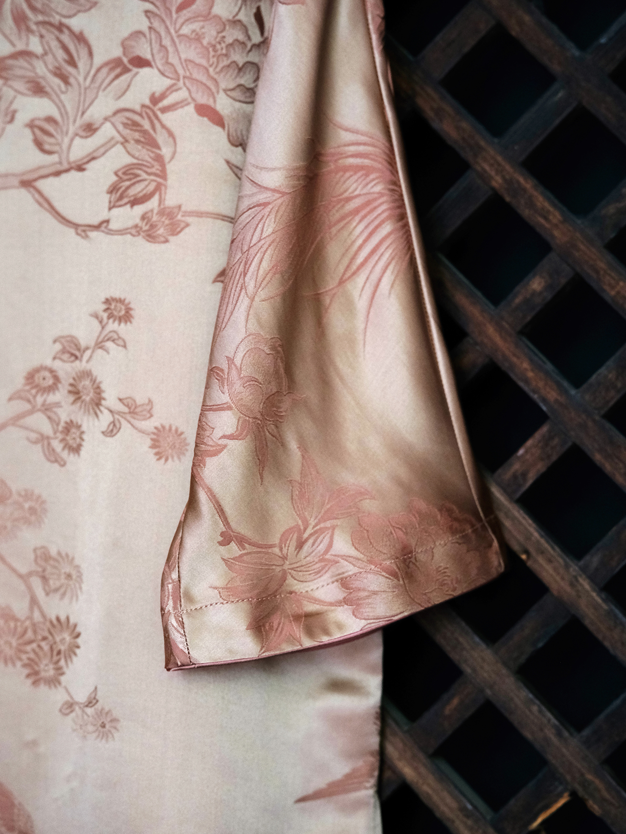盛唐牡丹 |梅兰竹菊真丝冠乐皱斜襟旗袍裙