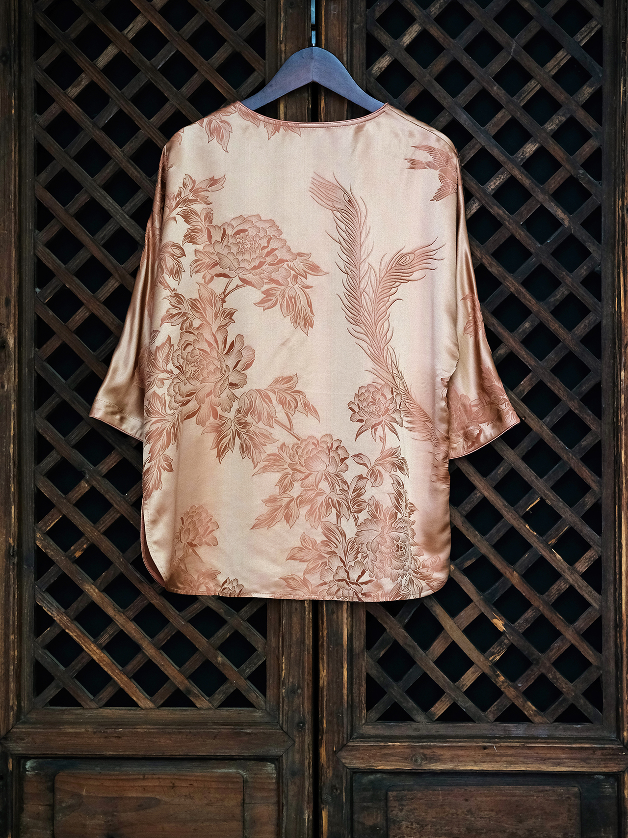 盛唐牡丹 |真丝提花梅兰竹菊外套/可正反两穿