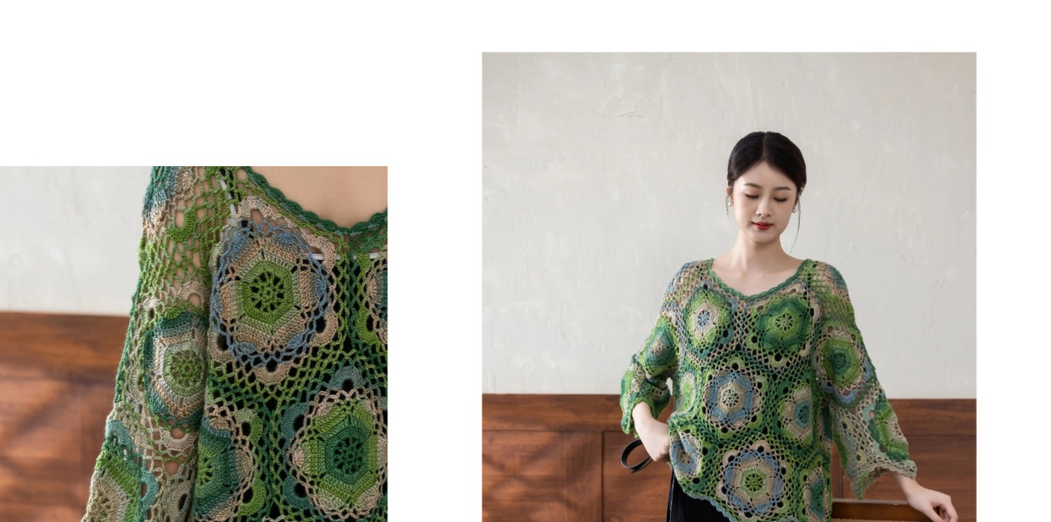 苏苏姐家春晓罩衫手工diy钩针编织羊毛段染毛线团衣服材料包