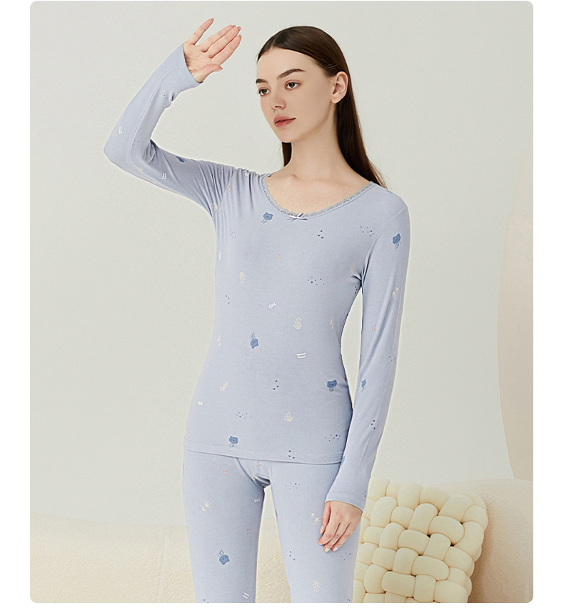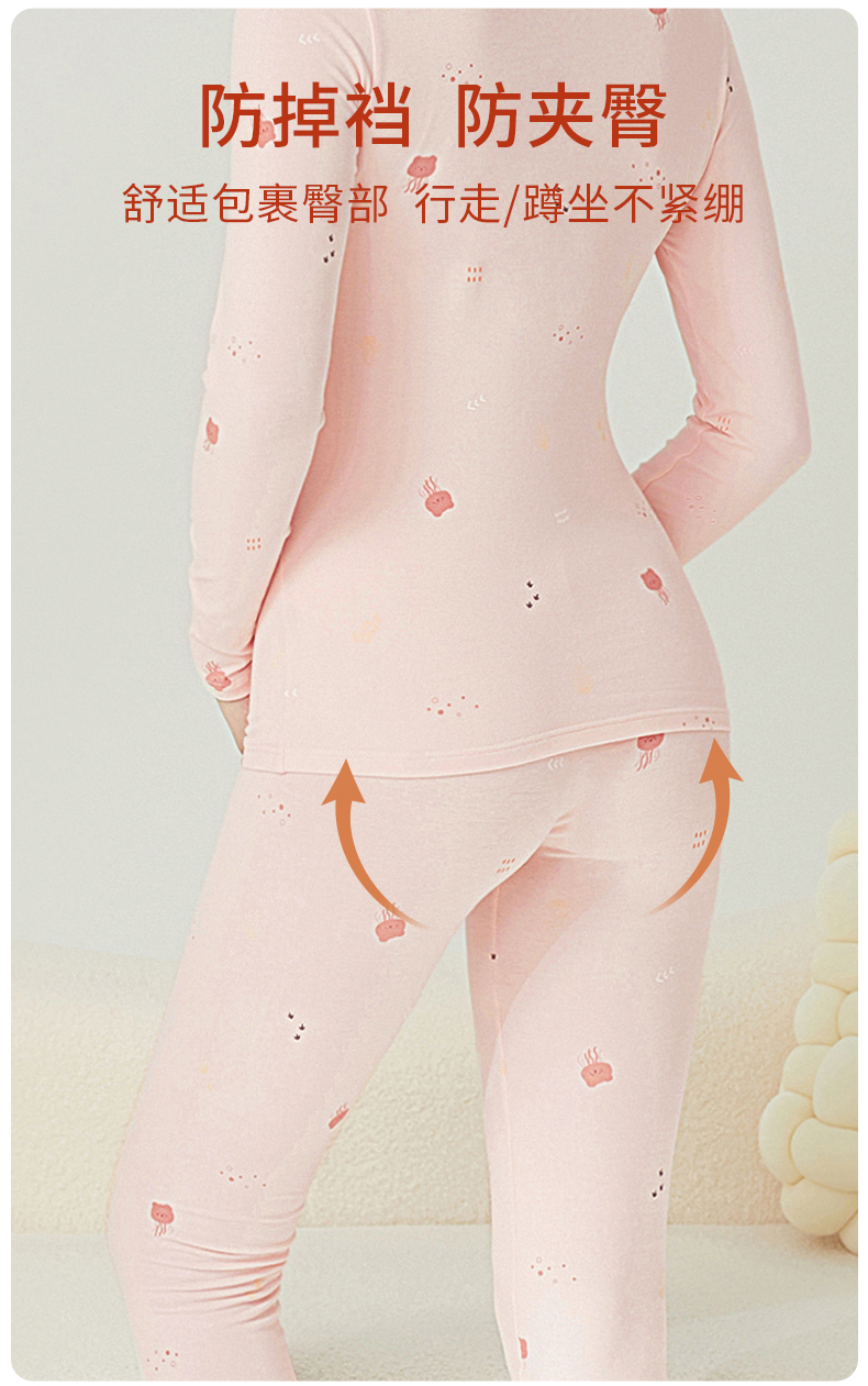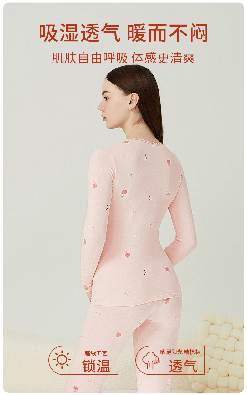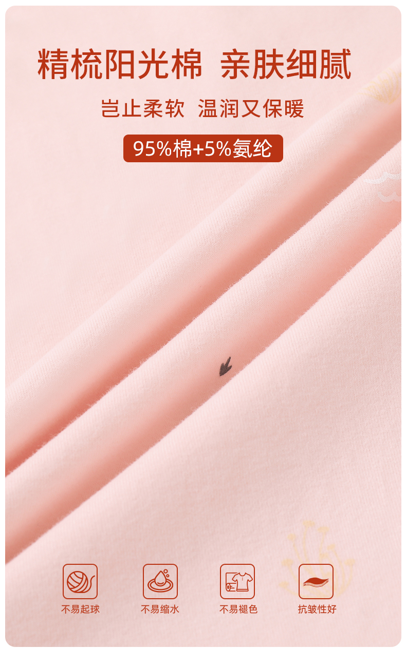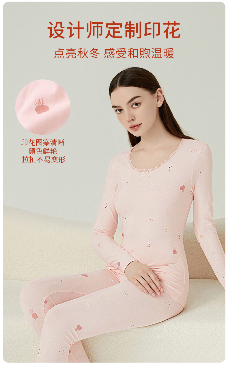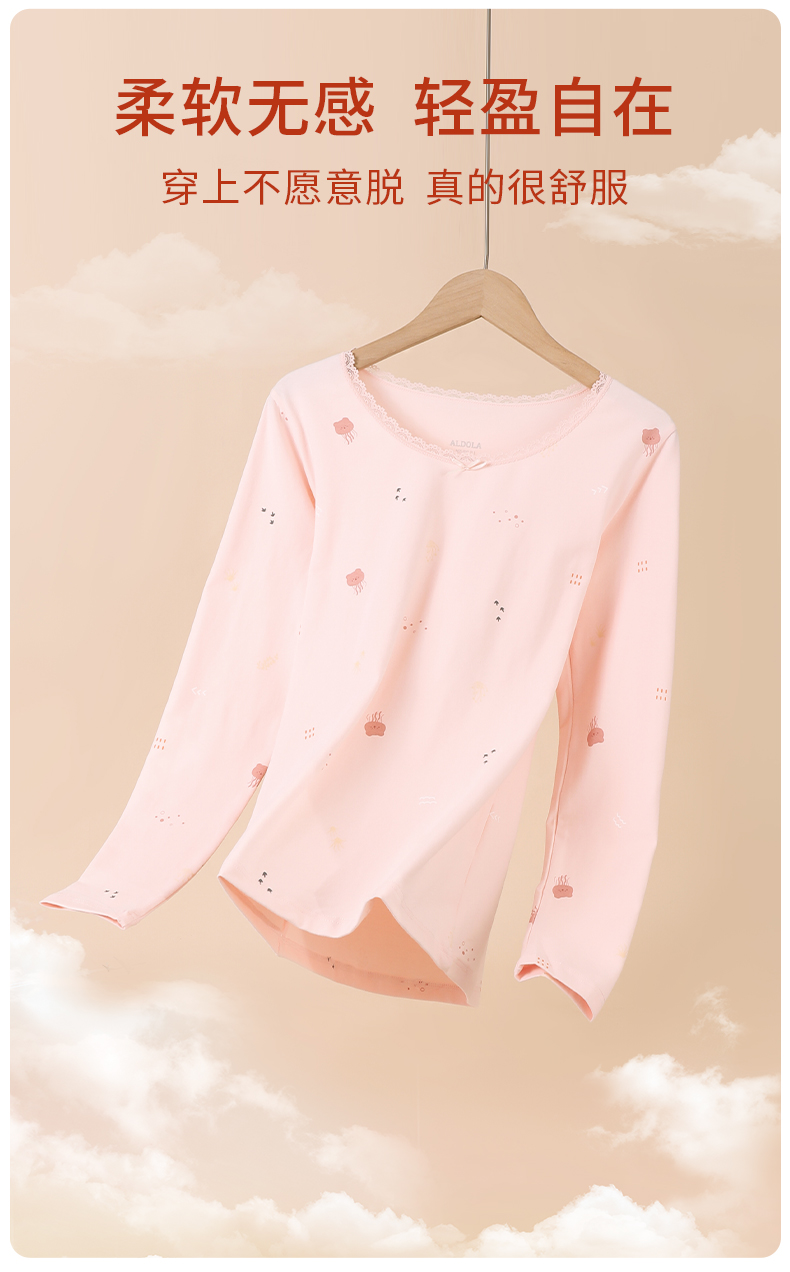 雅黛丽保暖内衣女5A抗菌纯棉亲肤透气薄款打底衣可爱印花长袖长裤