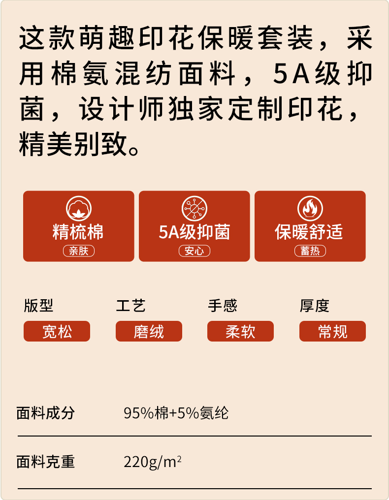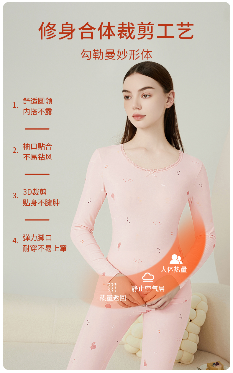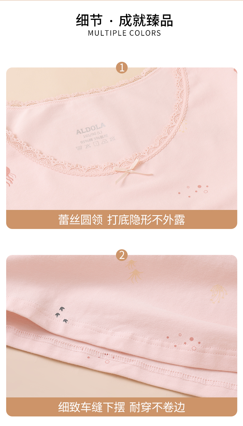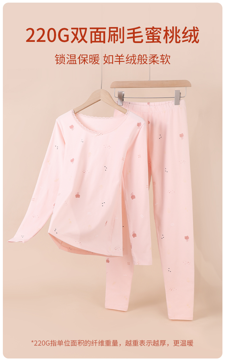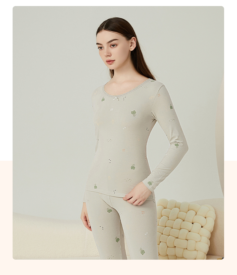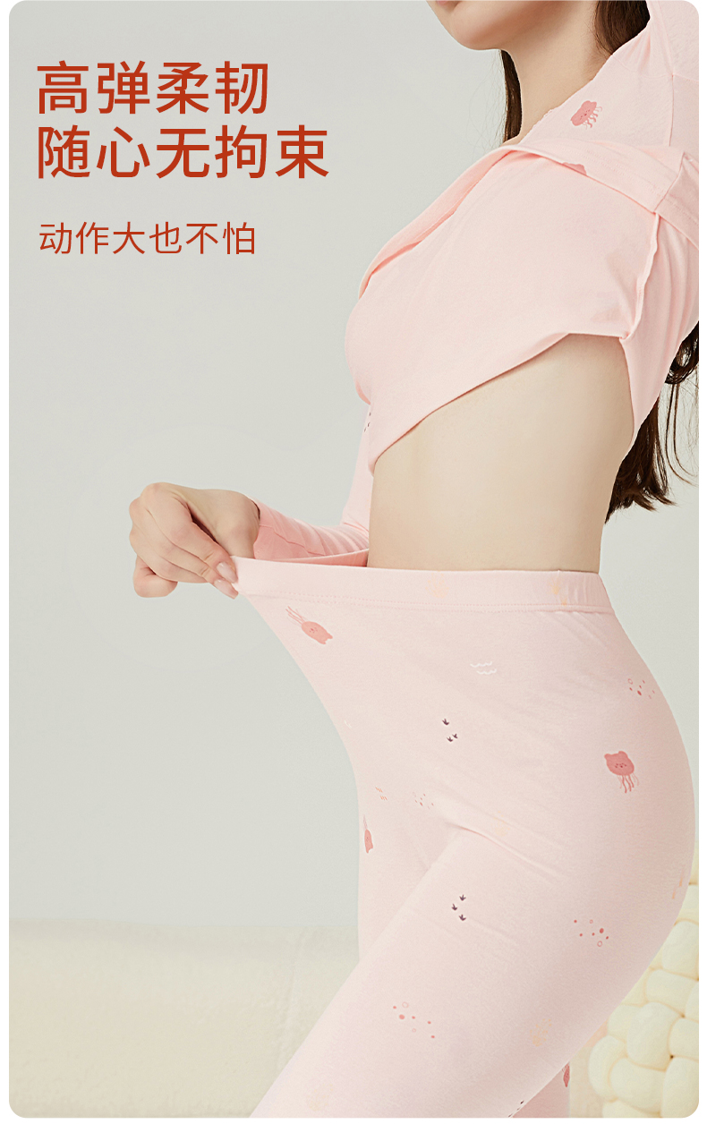 雅黛丽保暖内衣女5A抗菌纯棉亲肤透气薄款打底衣可爱印花长袖长裤