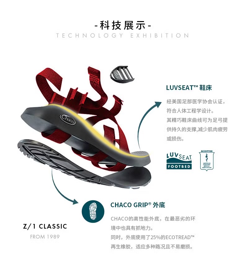 CHACO/查科Z1 Z2 CLASSIC男女款潮流运动户外Z字透气防滑山系凉鞋