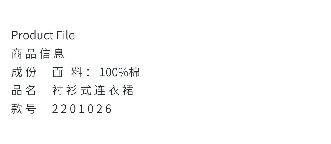 定制-衣橱挚爱-宽松舒适简约休闲通勤显瘦衬衫式连衣裙 2201026