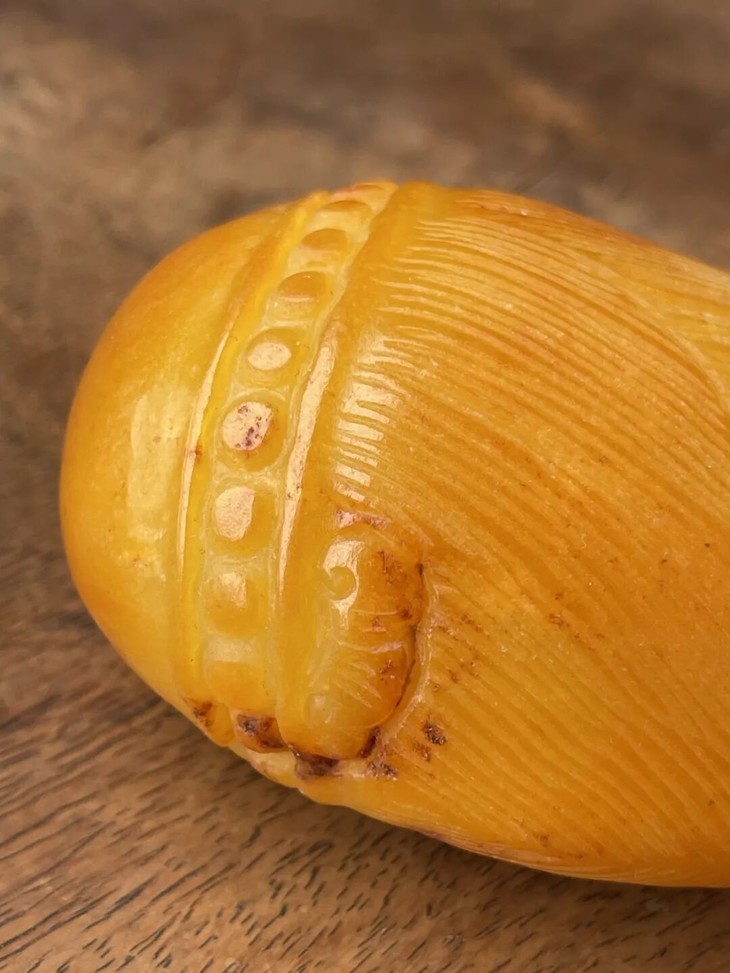 尺寸:玉雕玉米,长:8厘米,宽:6厘米,厚:4厘米,重量(含绳结):301.9克。