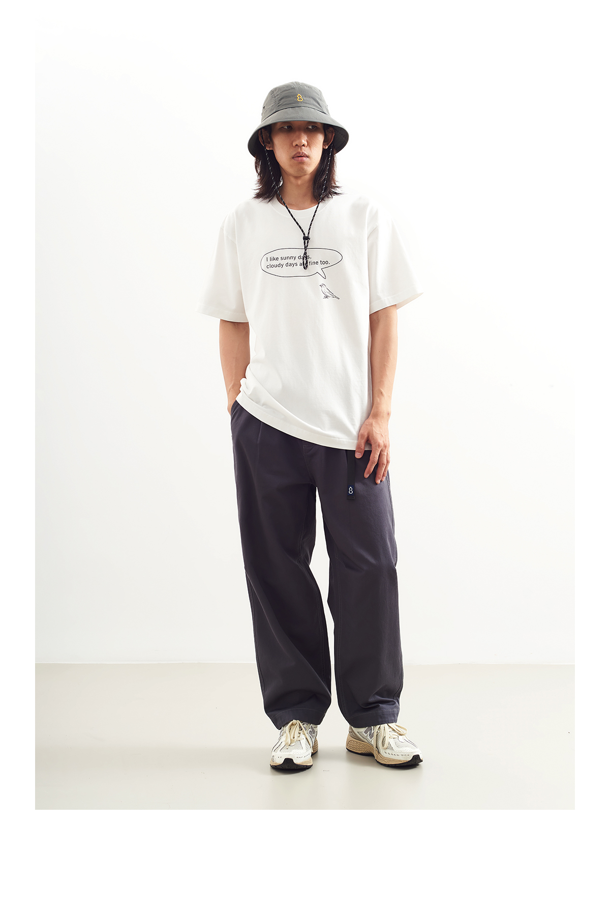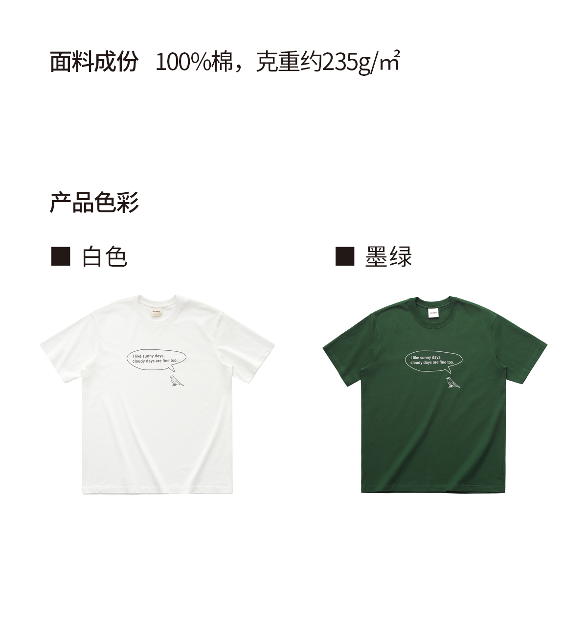 吃茶去chichaqu2024全棉圆领短袖T恤男女宽松印花麻雀鸟语