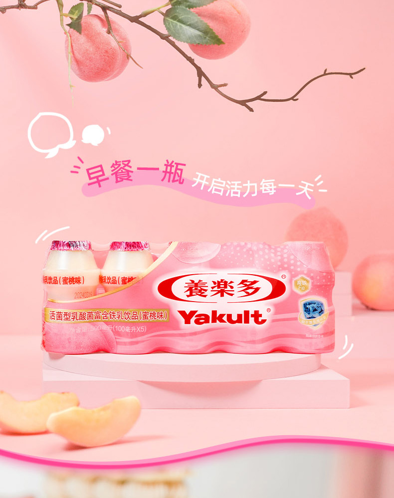 养乐多活菌型乳酸菌乳饮品蜜桃味100ml*5瓶低温调制乳品饮料