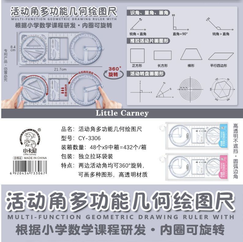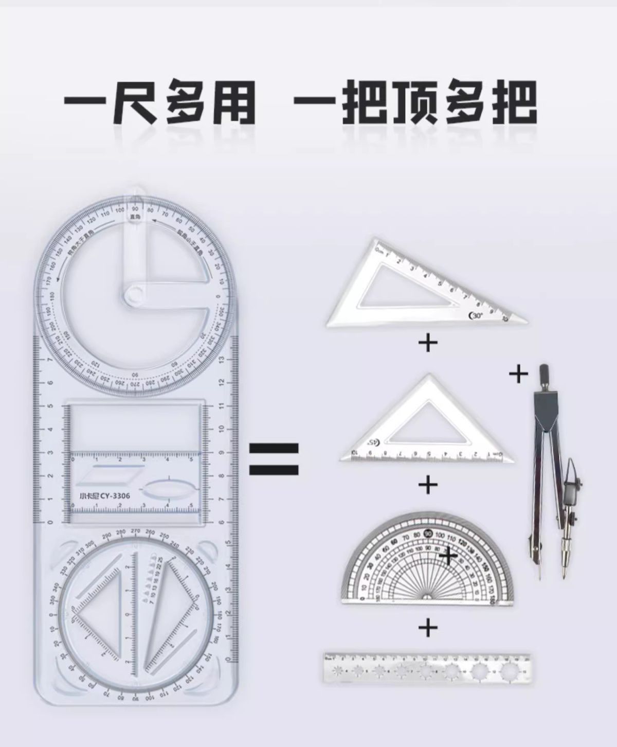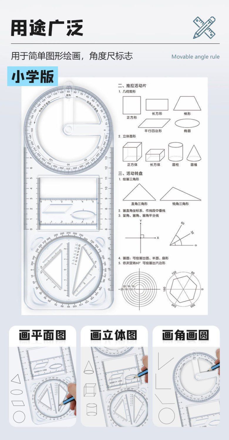 数学多功能绘图尺中小学生几何尺初高中几何函数尺三角尺量角器