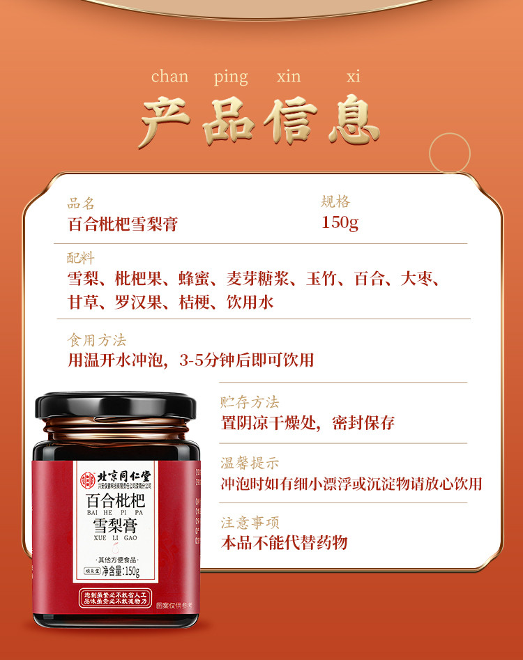 【百年古方 传承秘法】北京同仁堂枇杷琵琶雪梨膏