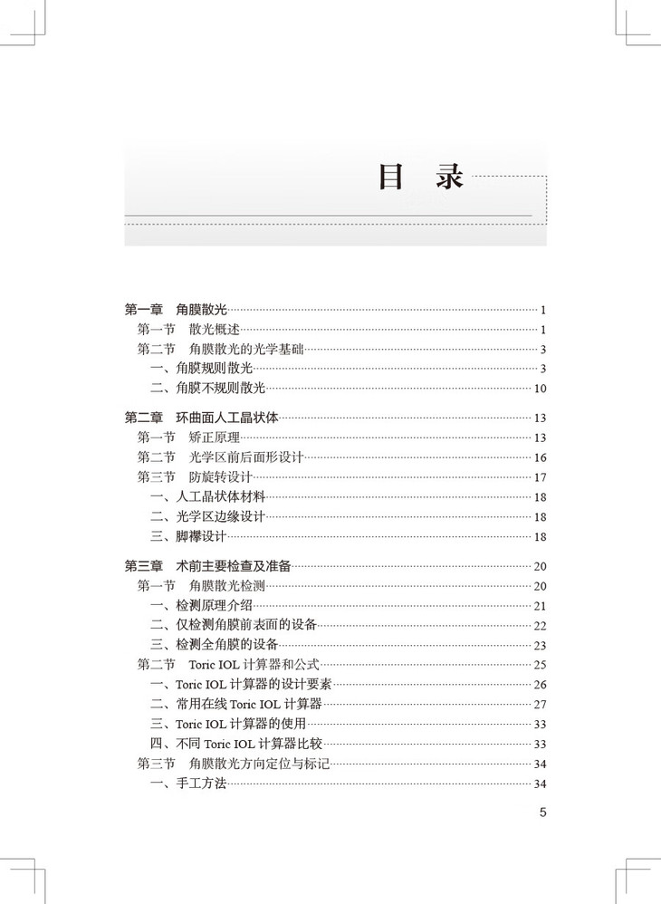 本书的主要内容涉及角膜散光的精准测量、环曲面人工晶状体(Toric IOL)的设计、现有Toric IOL的临床疗效、散光的科学计算、病人筛选、术前准备、手术操作、手术效果分析、术后管理和临床典型案例分析,为临床工作者提供科学、严谨、清晰、可行的诊疗流程。本书包含了作者总结的丰富的典型病例和详细诊疗思路,并结合国内外研究,得出一定的结论,用于指导临床,为其他单位开展临床应用提供指导,具有较高的可读性和实用性。