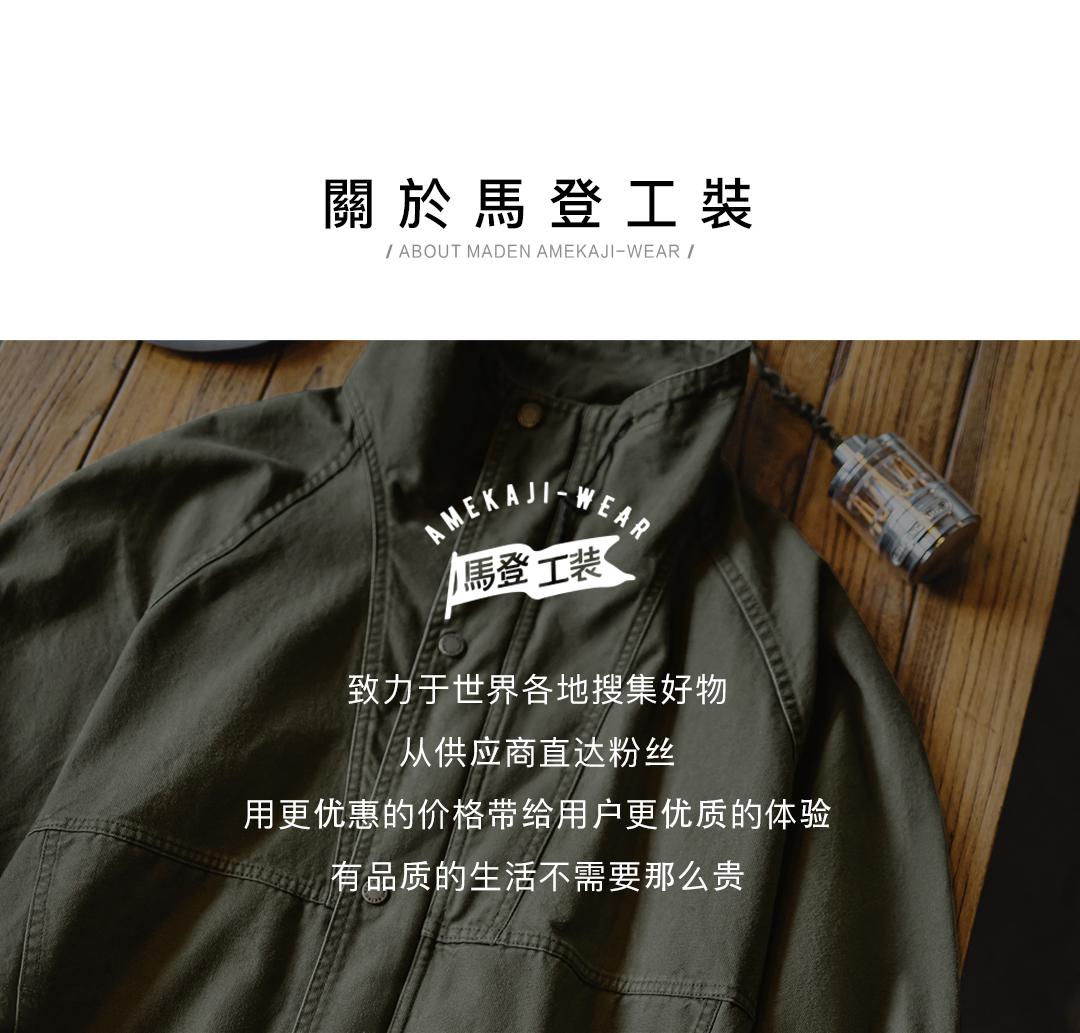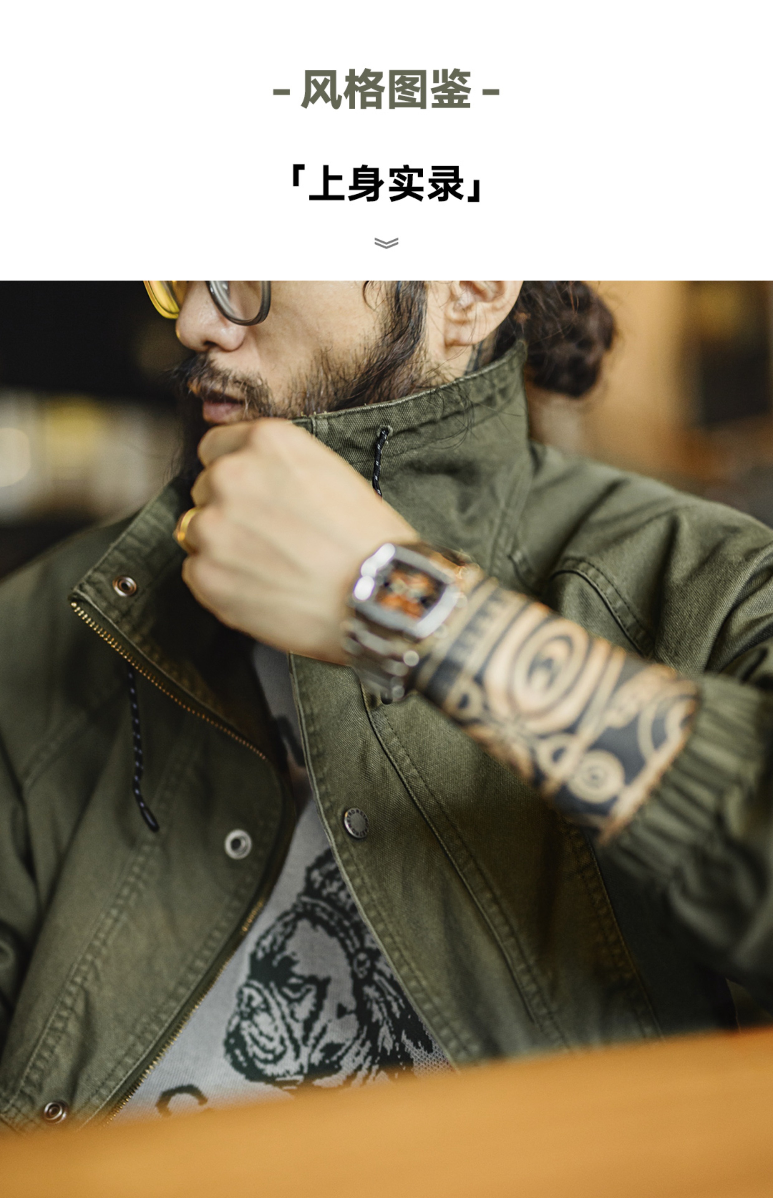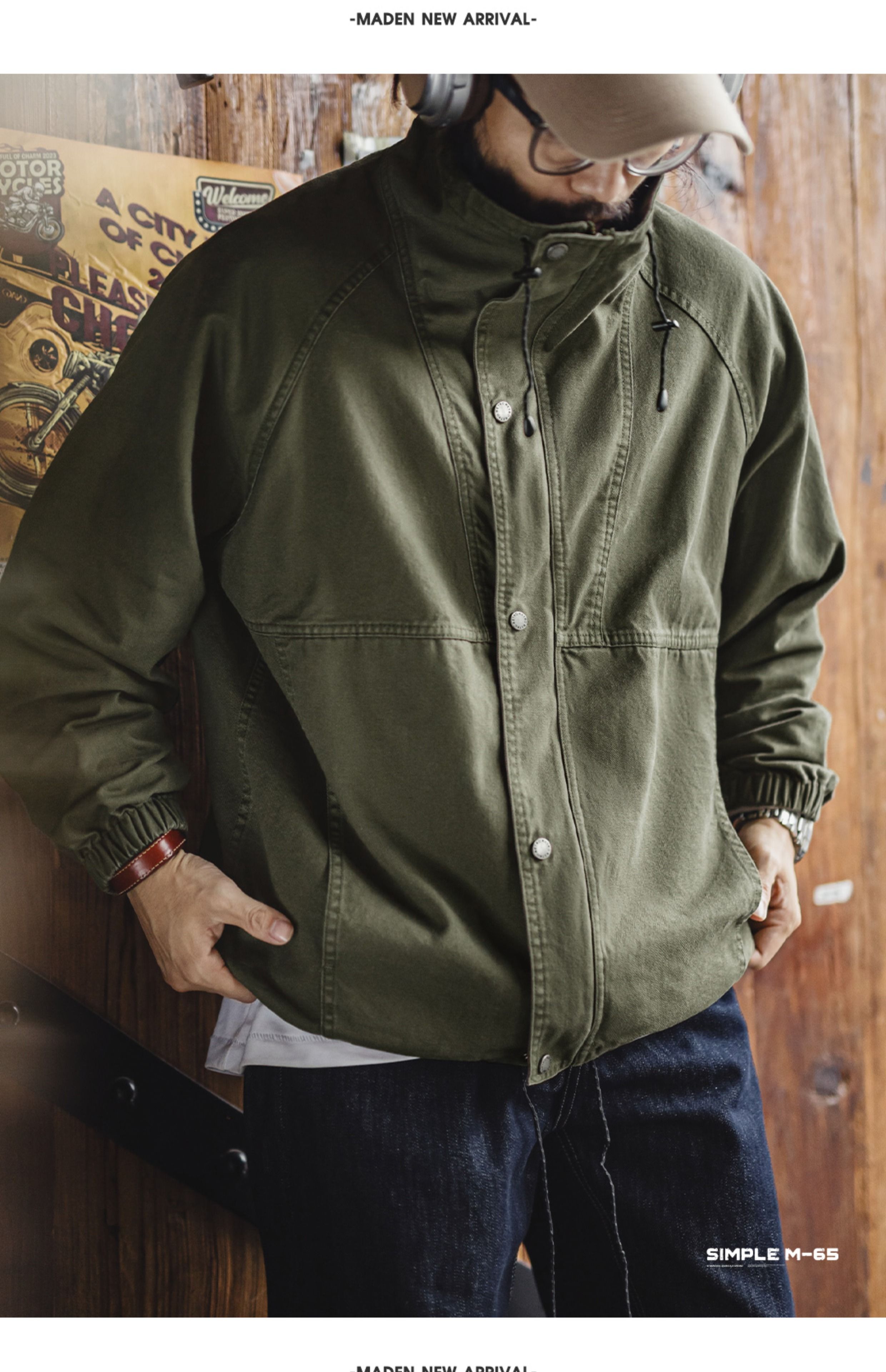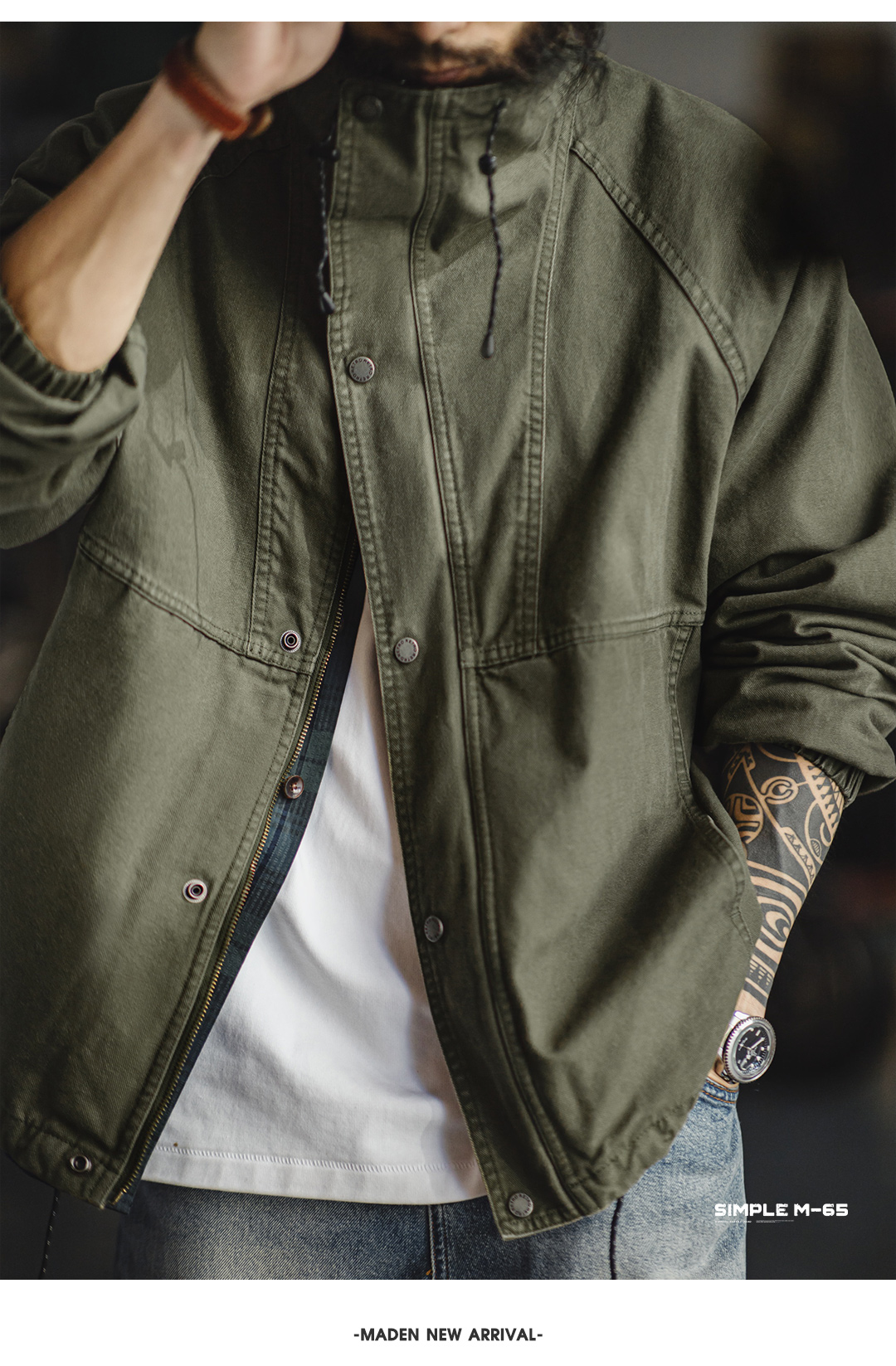 马登工装美式复古立领M65夹克防风廓形军绿色硬汉vintage外套男秋