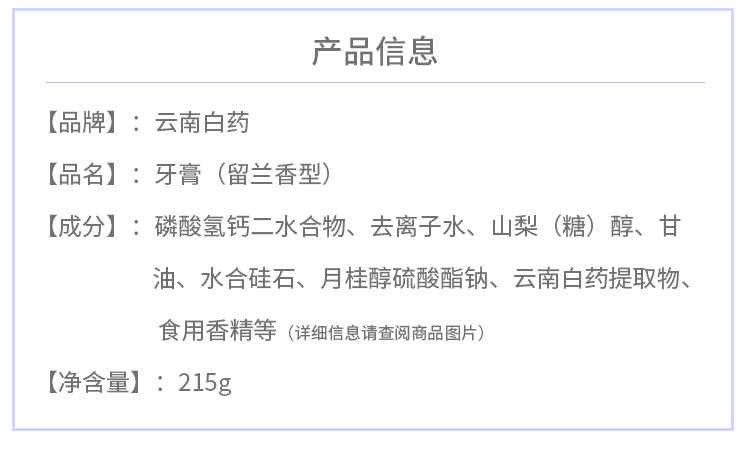云南白药牙膏留兰香型(促销装)215g 21003194