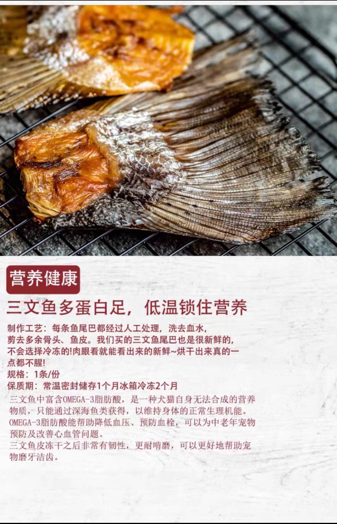 烘干三文鱼尾洁齿磨牙美毛补钙大号一只独立装(鱼油溢出属于正常现象介意勿拍)