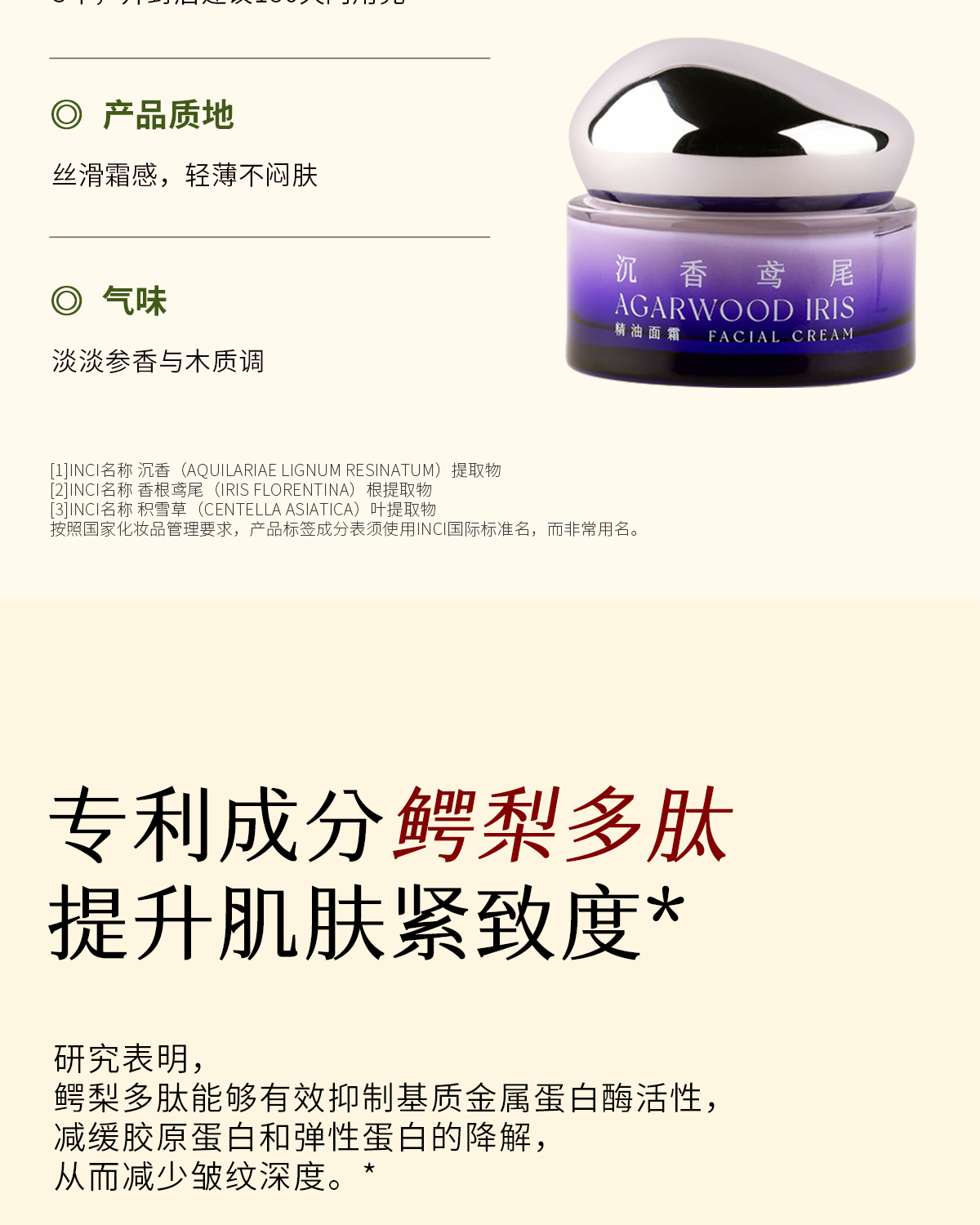 枕草子【沉香鸢尾精油面霜】胶原锁紧,紧致看得见 复配人参,小分子更养肤