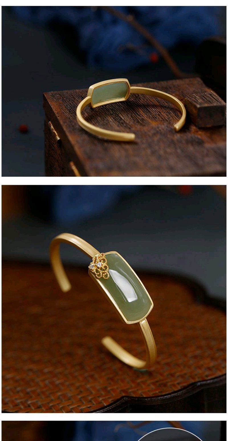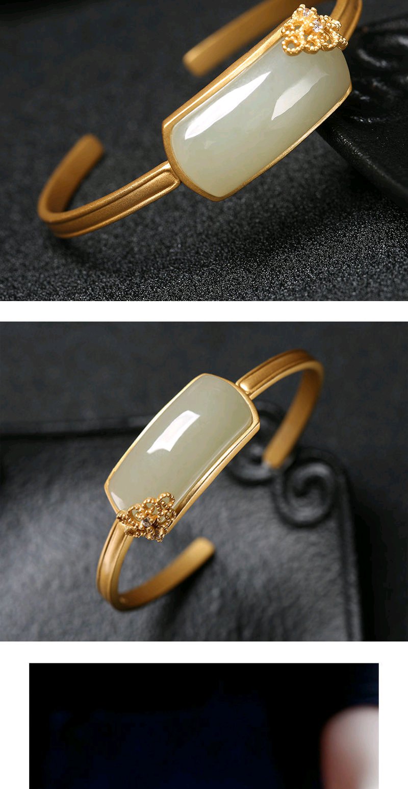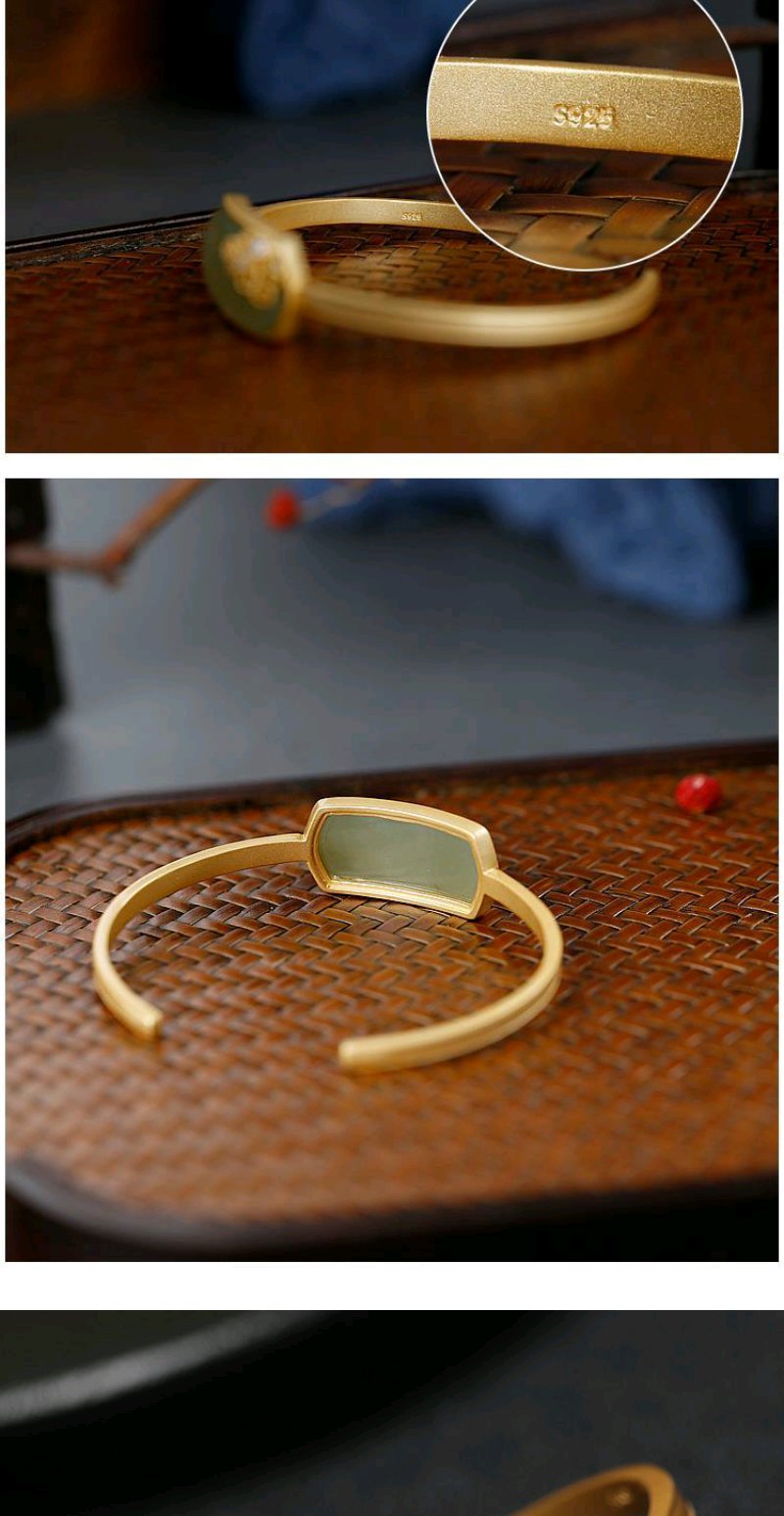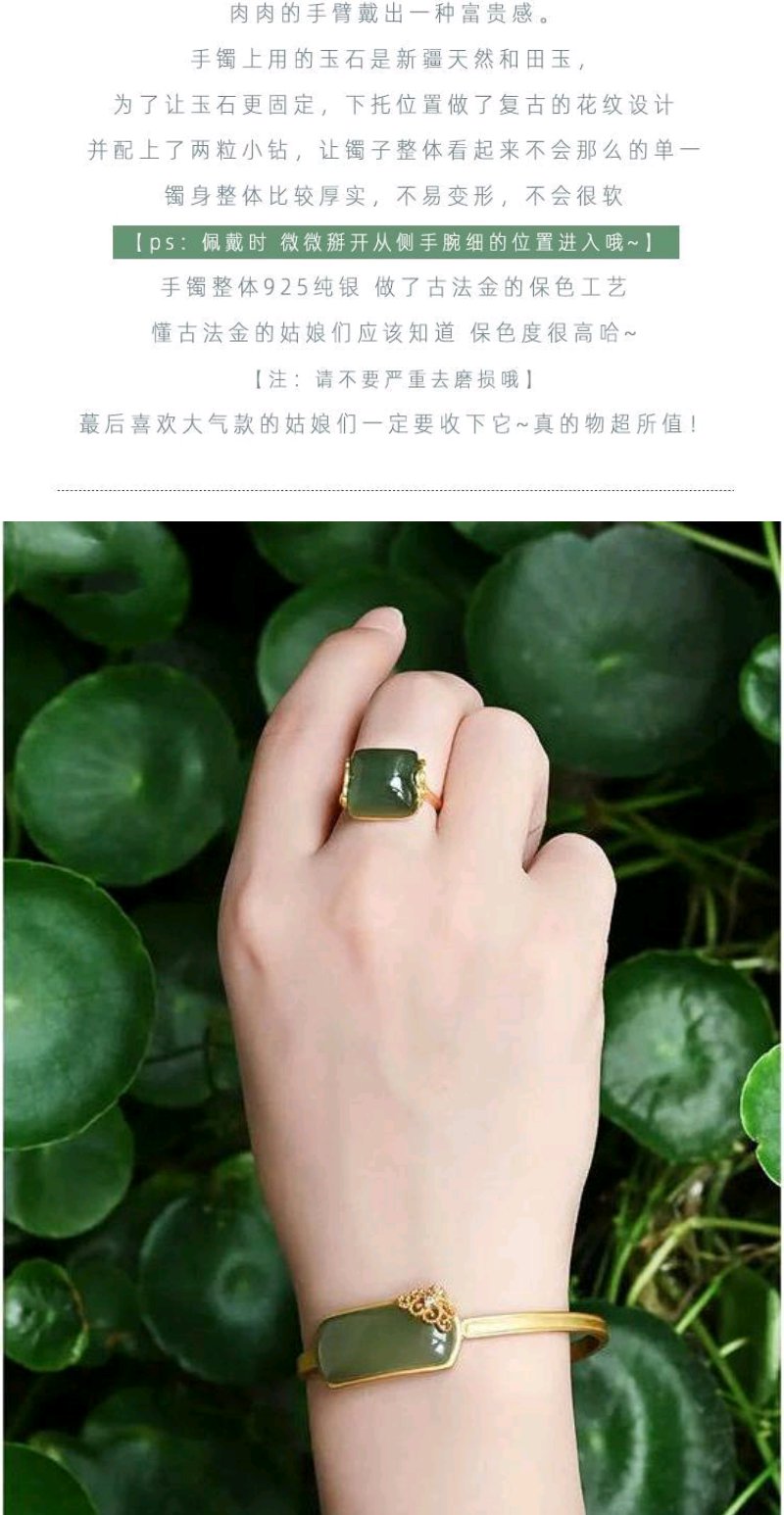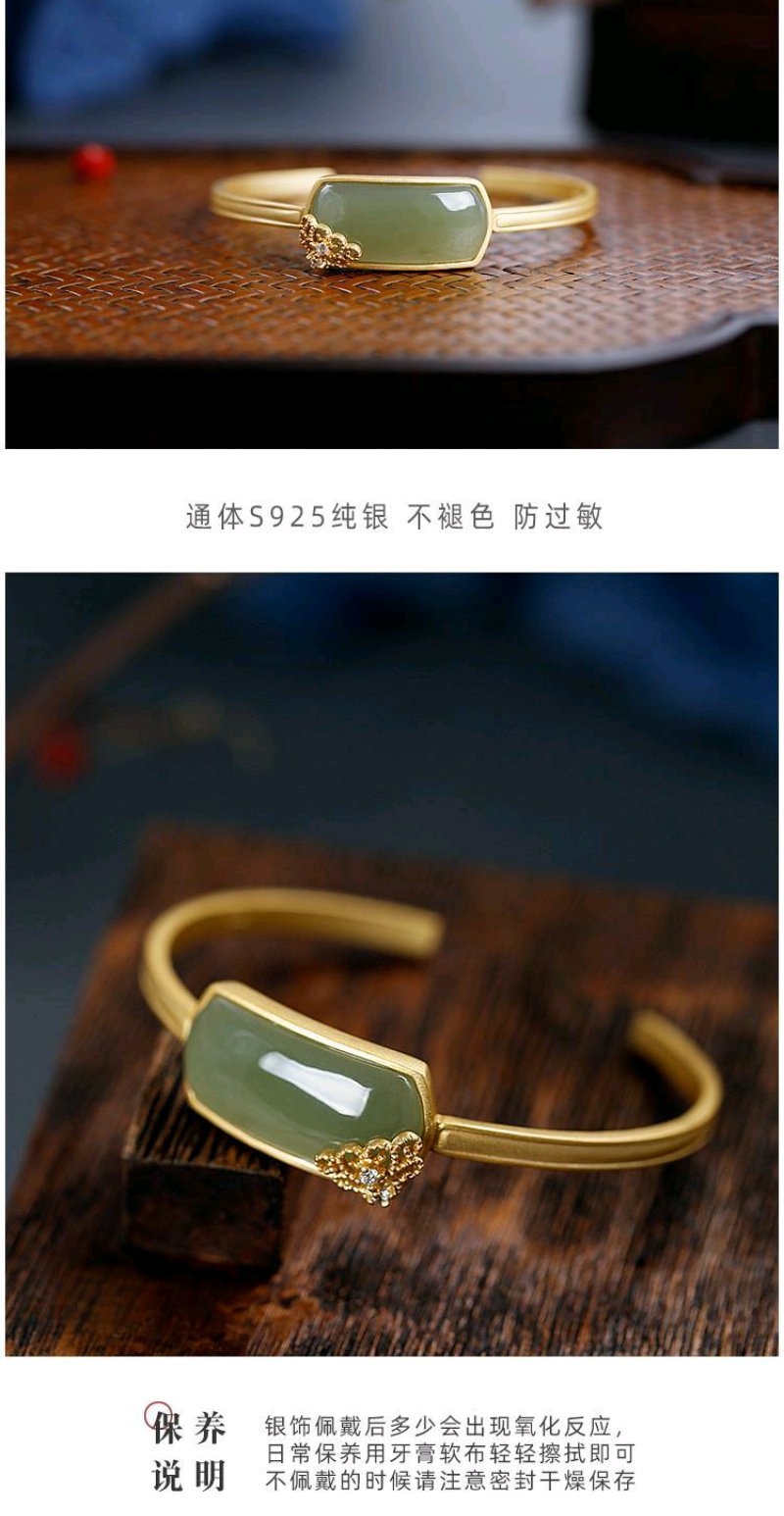 平安无事牌手镯银古法金镯子女碧玉开口宫廷手饰品
