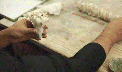 ▲拼合花瓣,师傅们根据脑中想象,将花瓣拼合起来,以何种姿态呈现,无人知晓,考的是审美积淀。