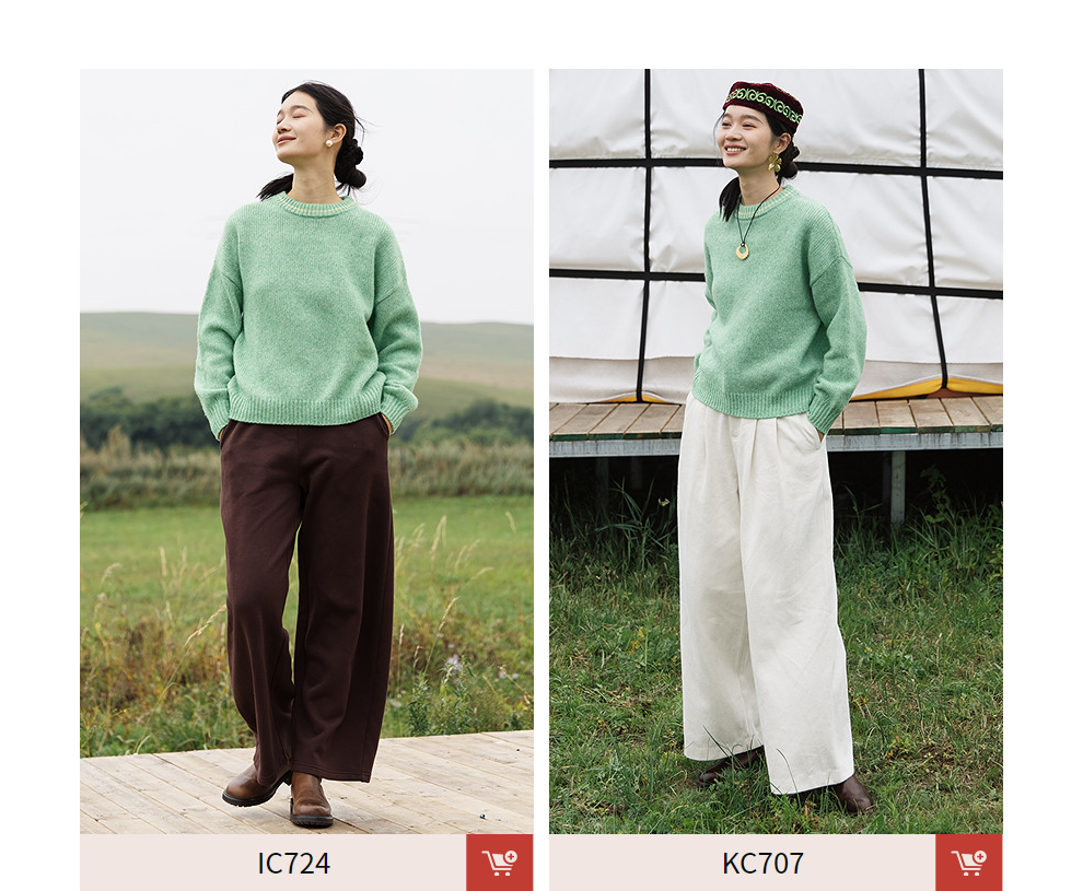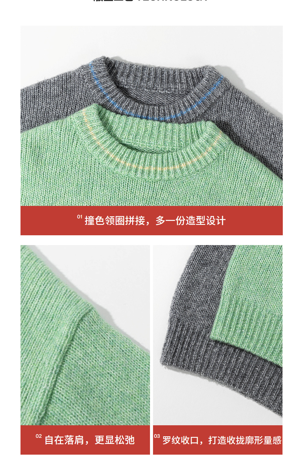 绽放710朵/羊毛棉花纱撞色落肩圆领套头毛针织衫加厚保暖毛衣女冬