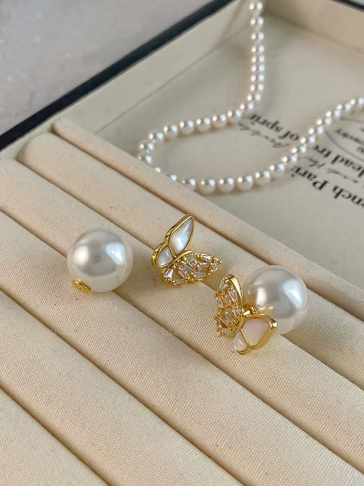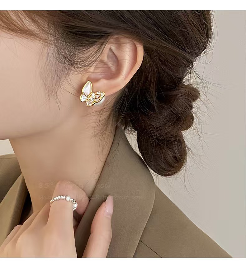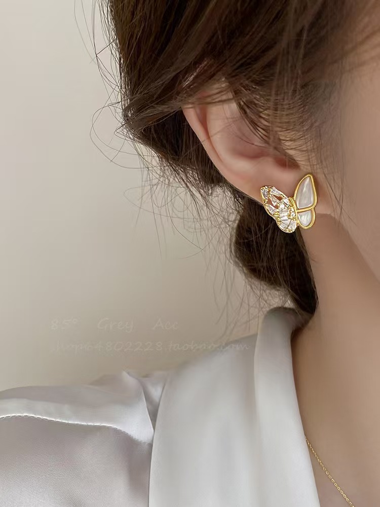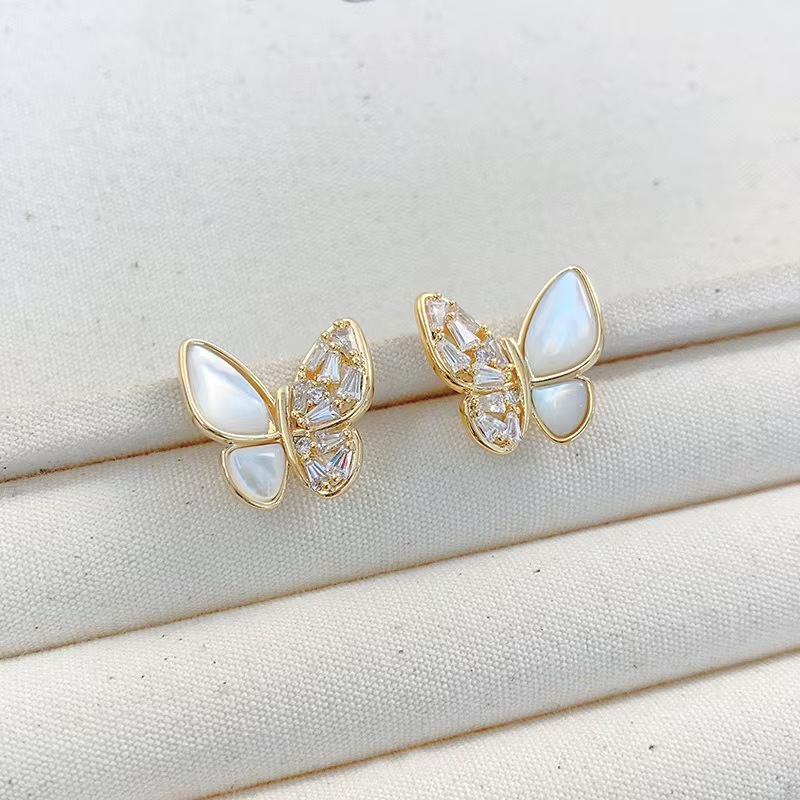 S925银针,镀金工艺,镶钻贝母蝴蝶