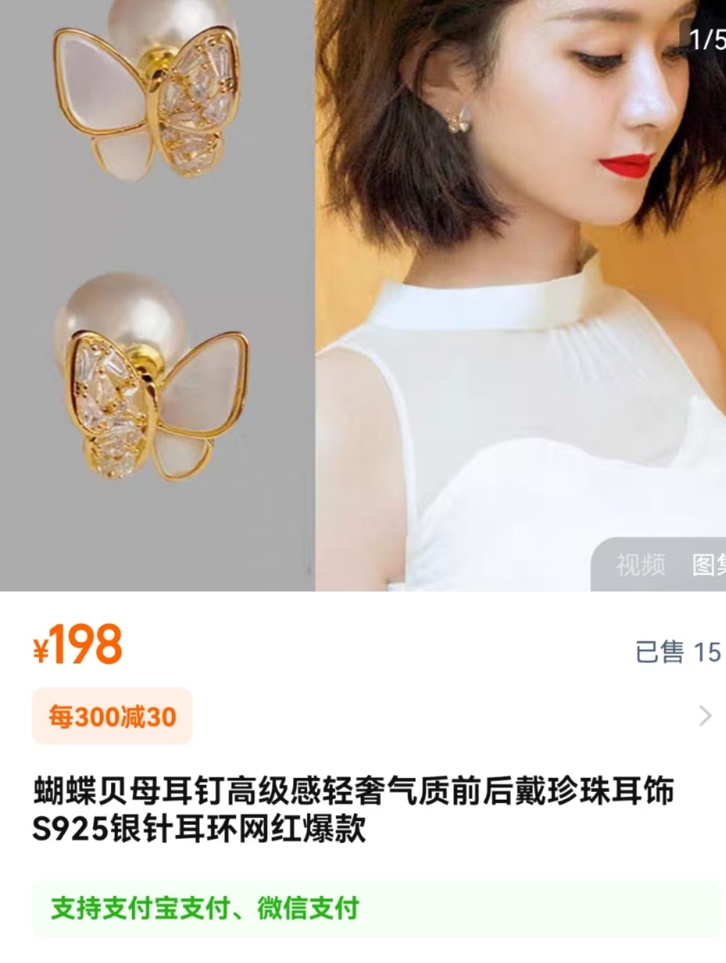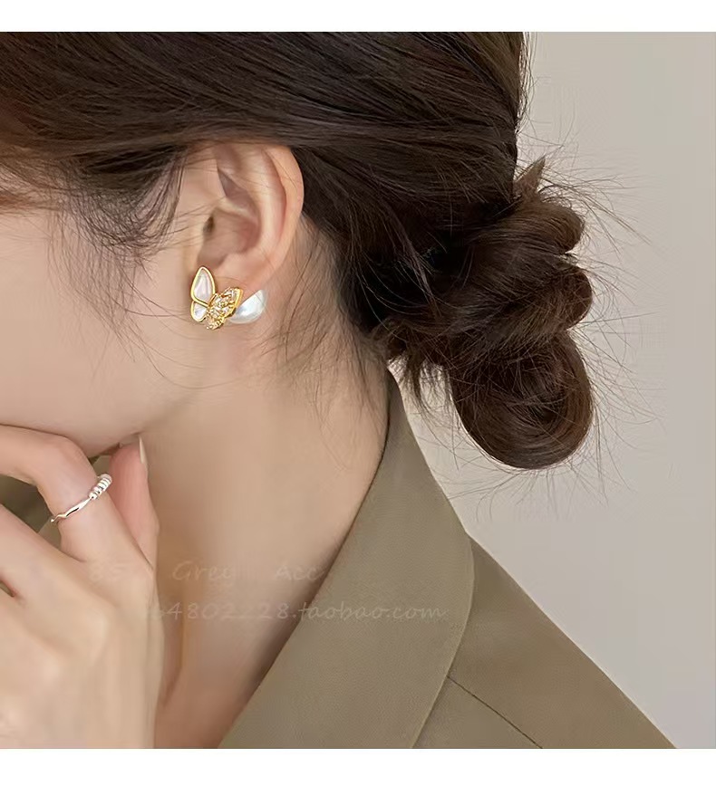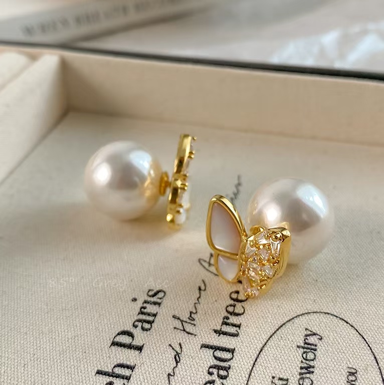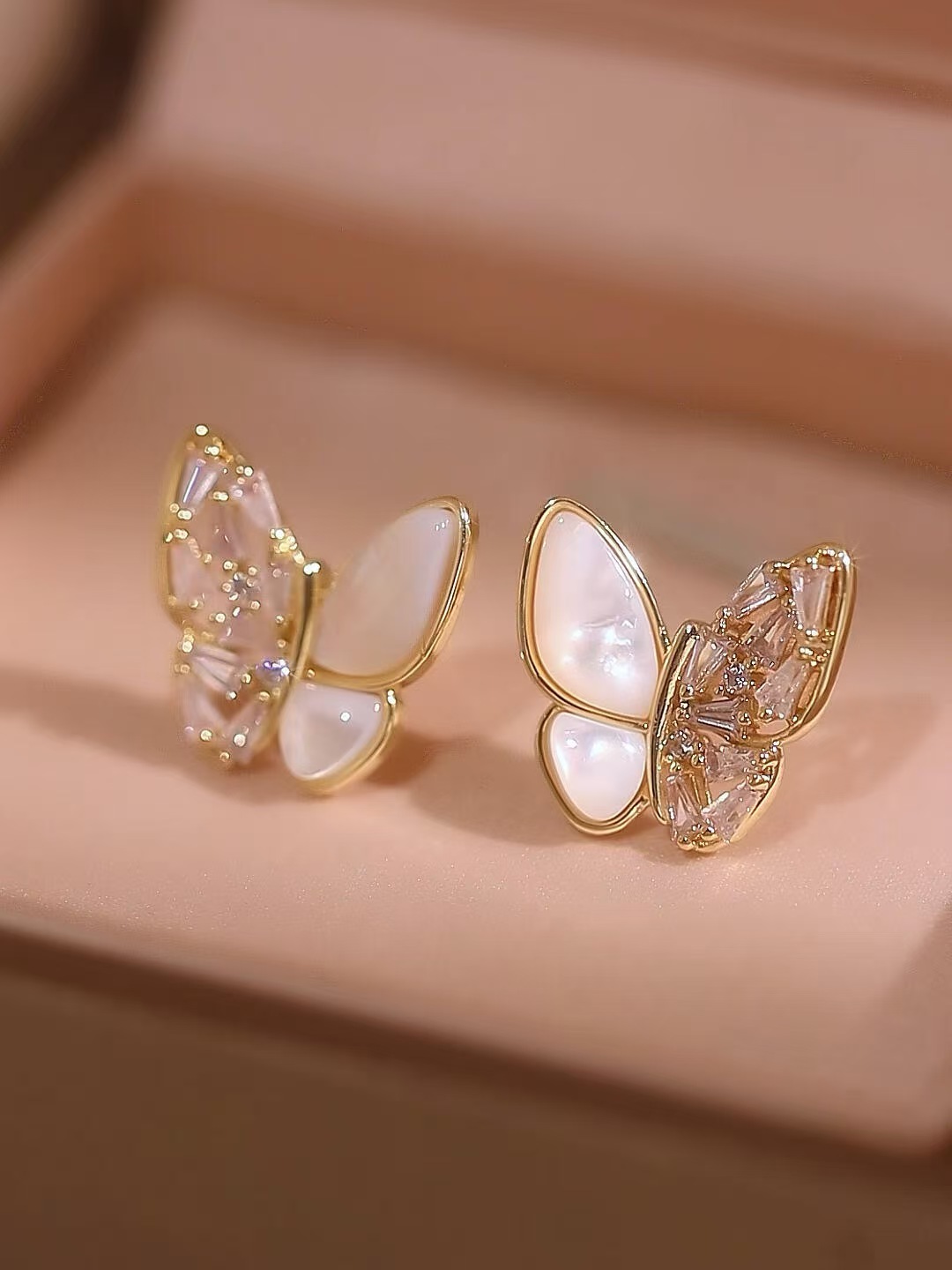 S925银针,镀金工艺,镶钻贝母蝴蝶