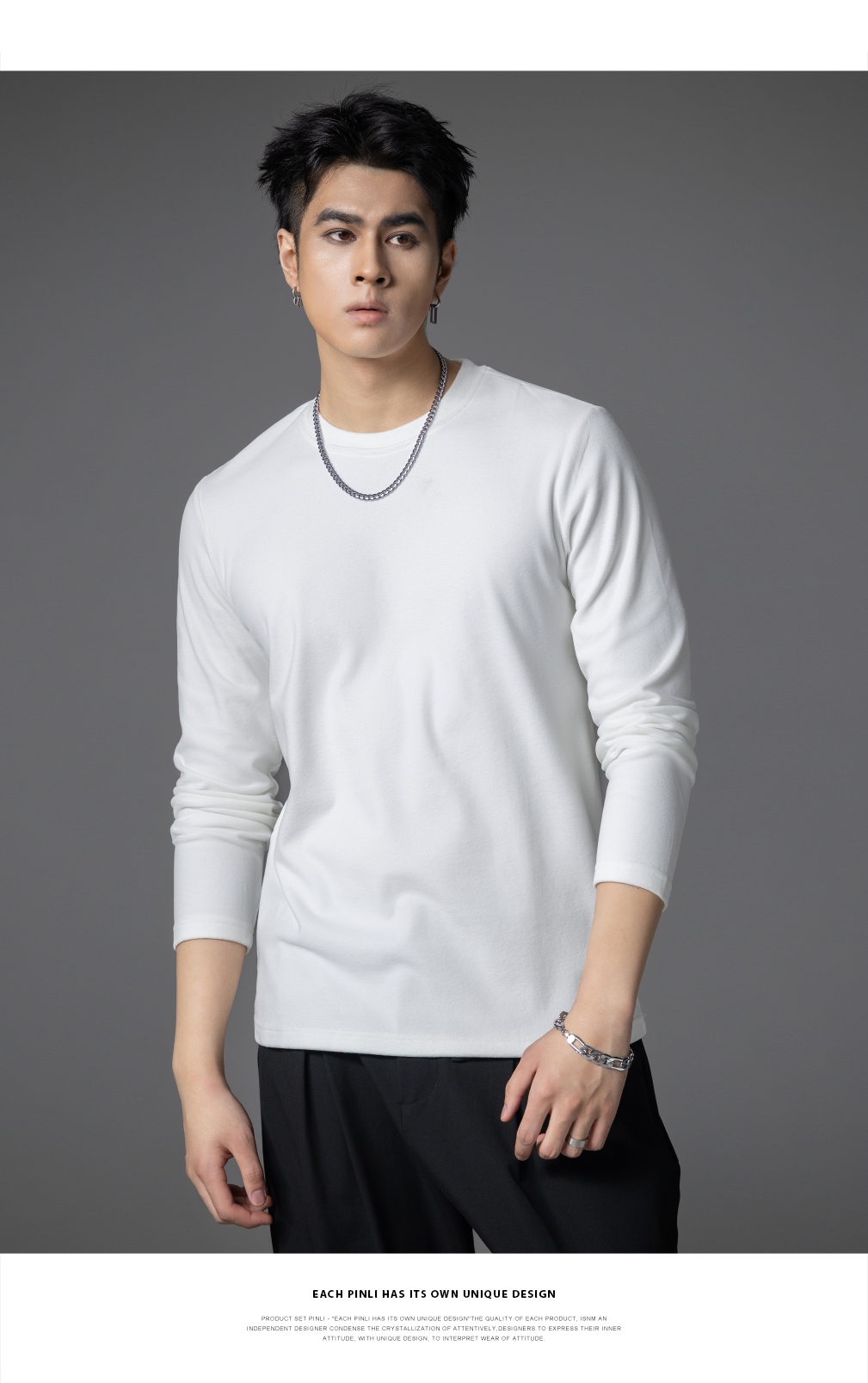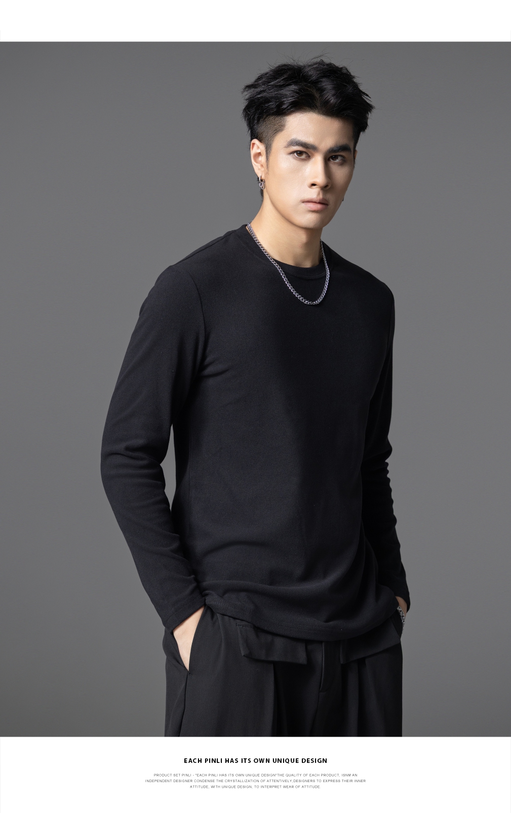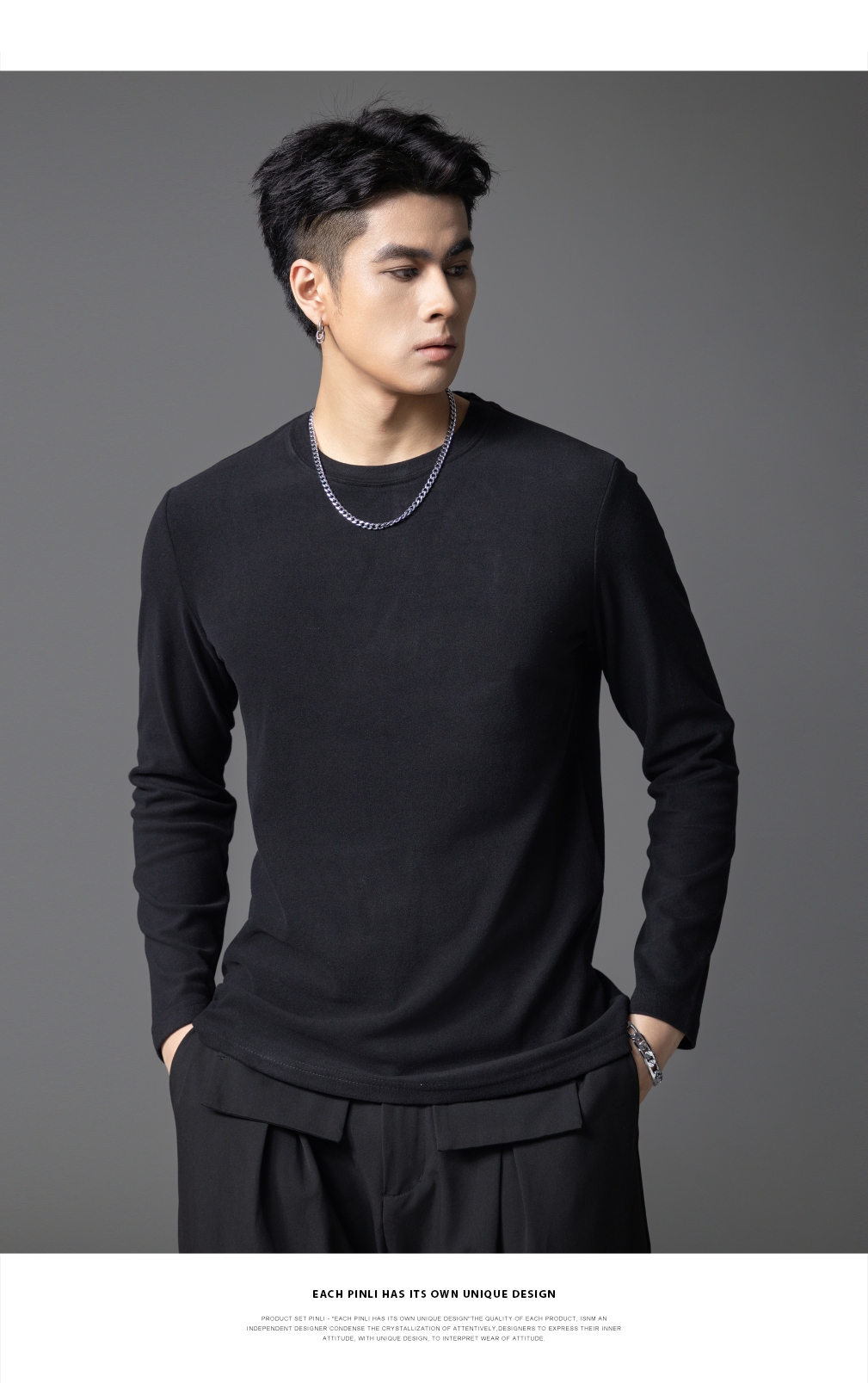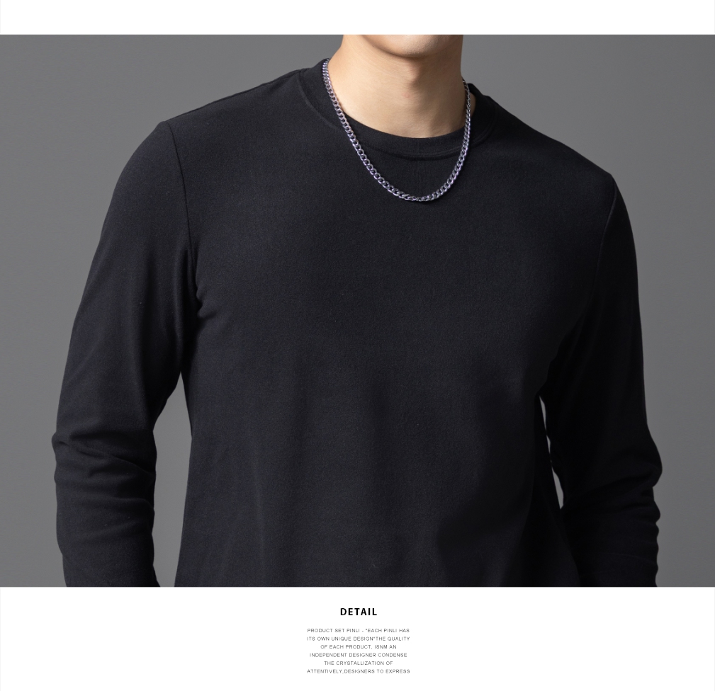 PINLI品立2025秋季新款修身圆领纯色长袖打底T恤内衣上衣潮牌男士GD253111083