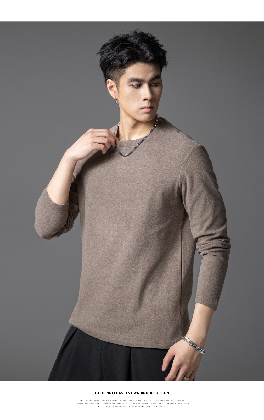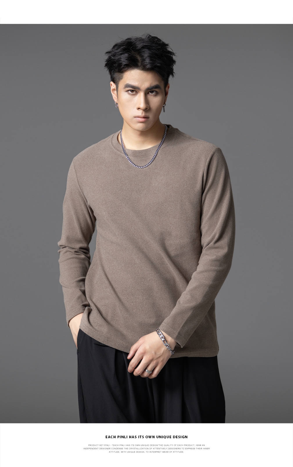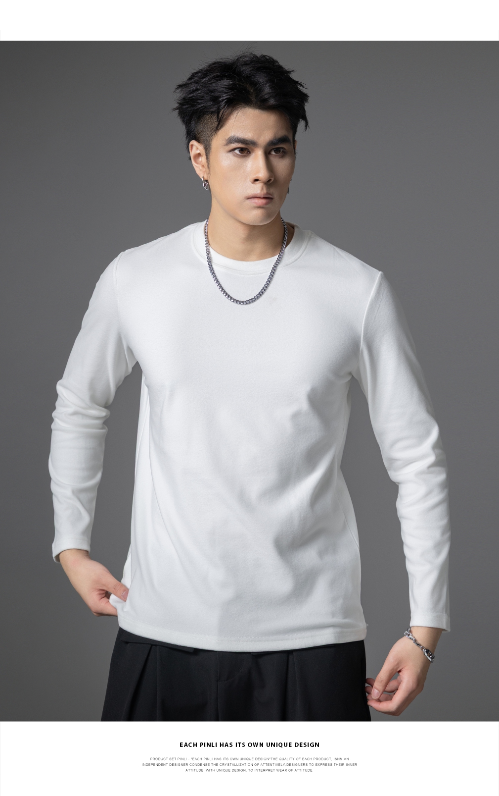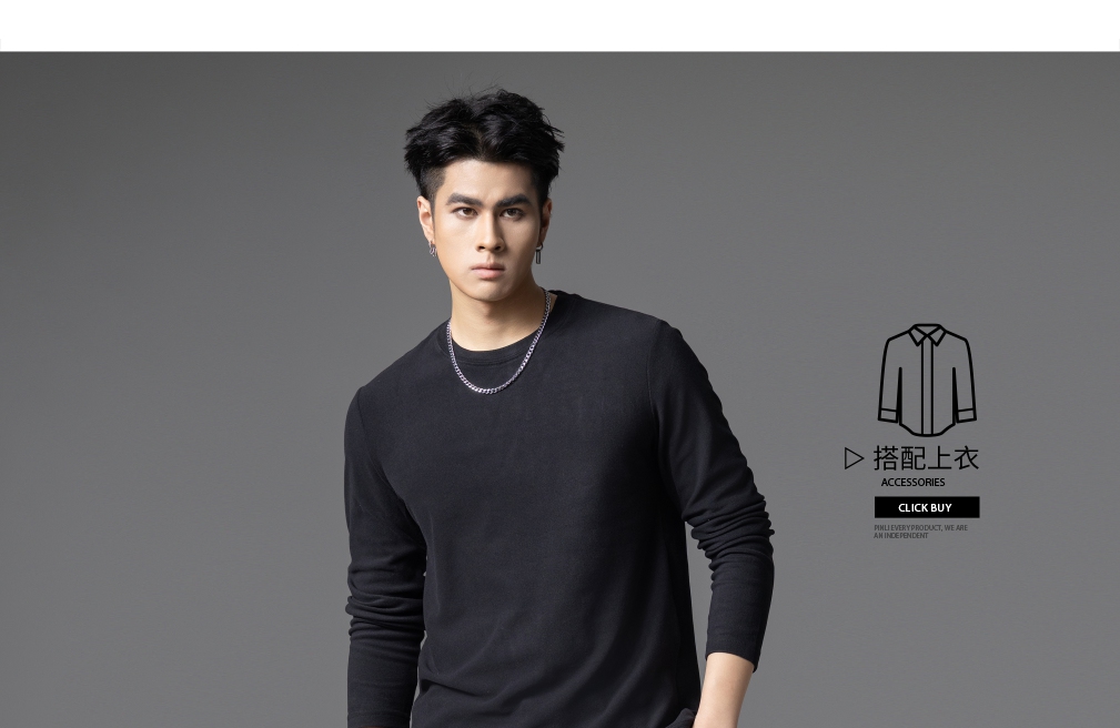 PINLI品立2025秋季新款修身圆领纯色长袖打底T恤内衣上衣潮牌男士GD253111083