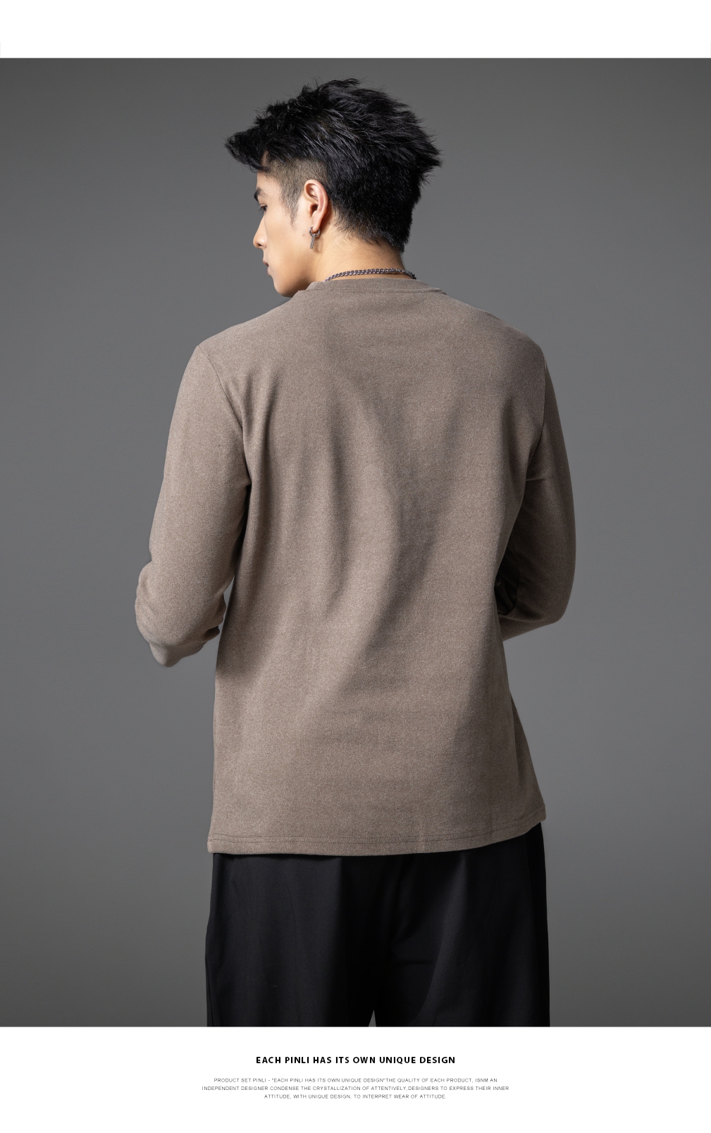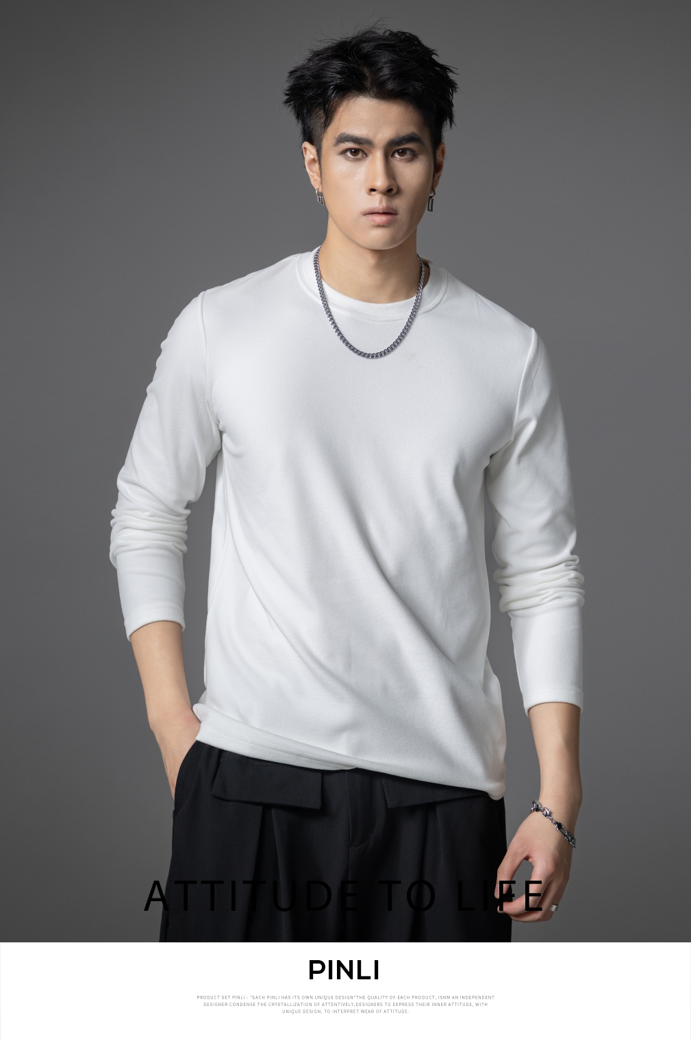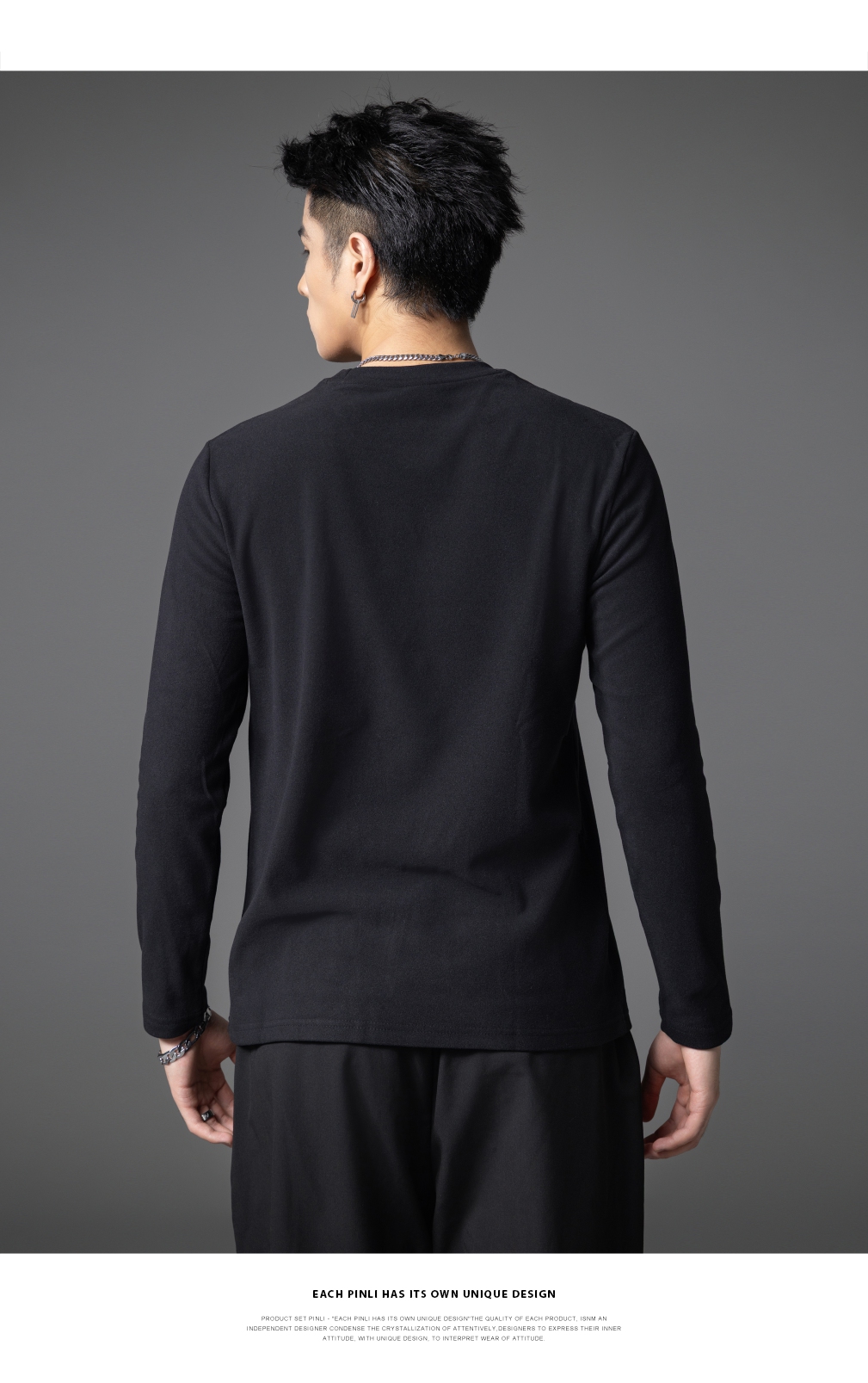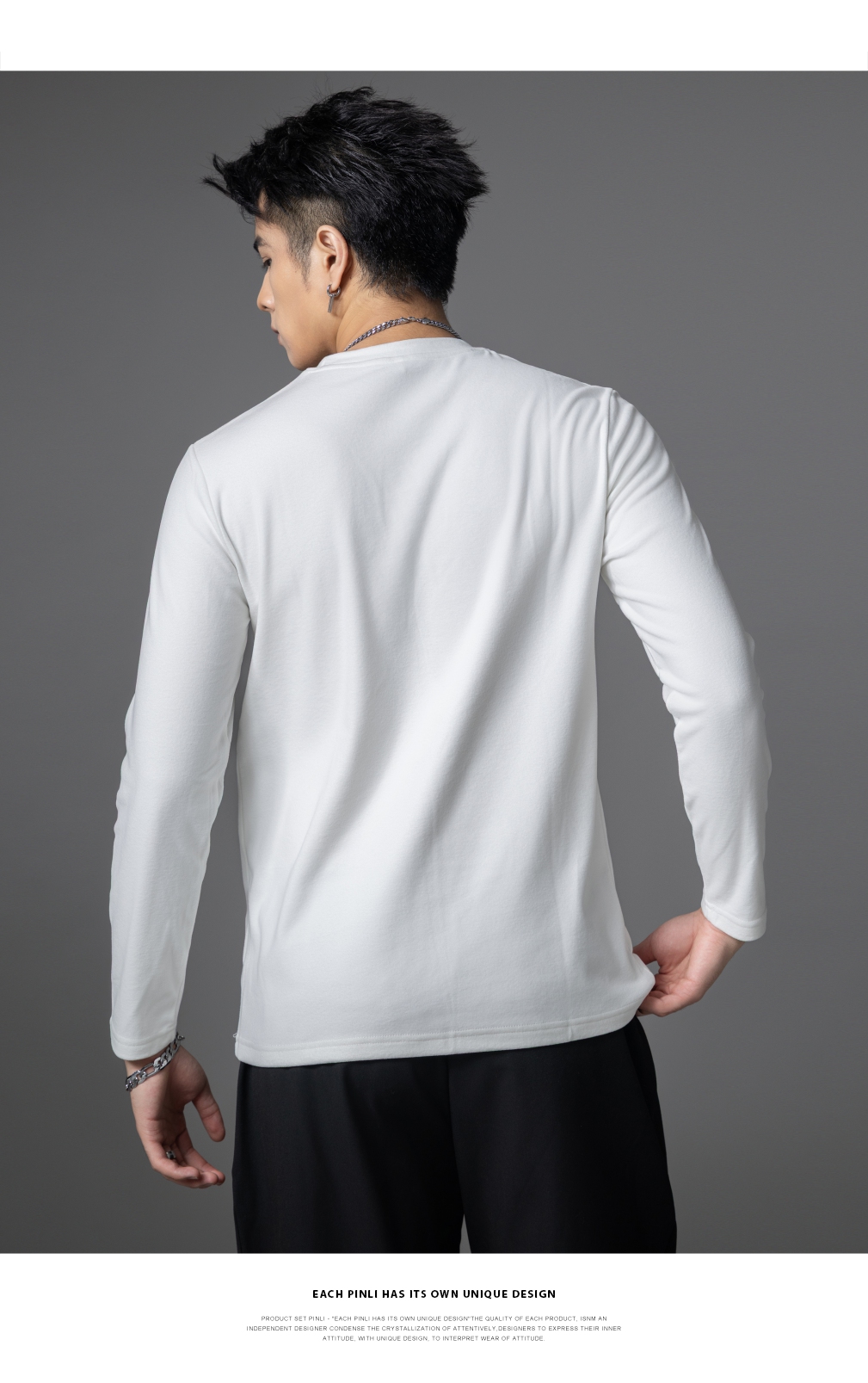 PINLI品立2025秋季新款修身圆领纯色长袖打底T恤内衣上衣潮牌男士GD253111083