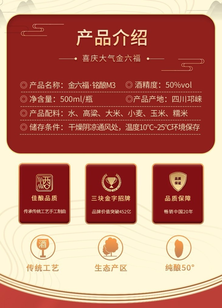 金六福五粮酿造窖陈浓香型白酒50度500ml