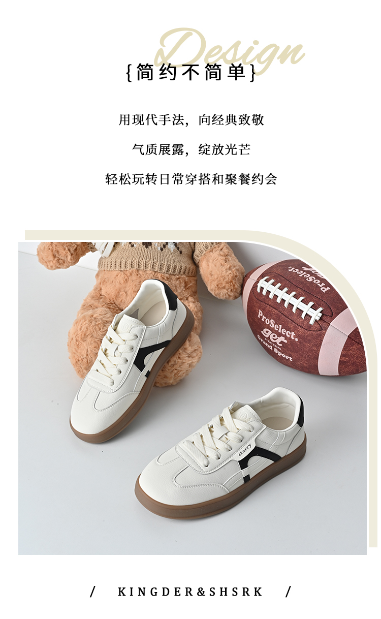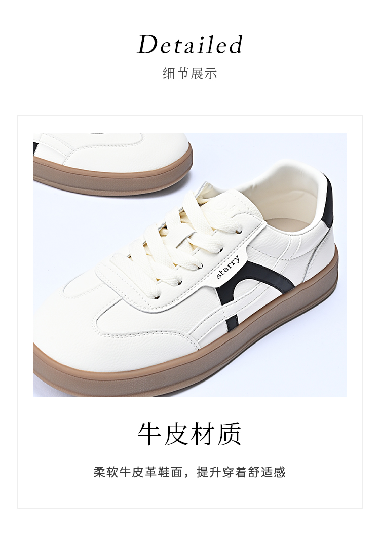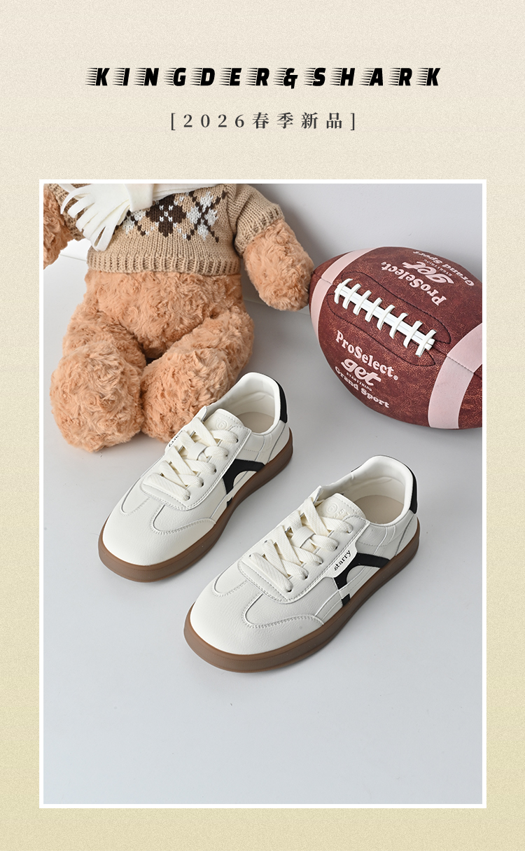 经典鲨2026年春专柜新品牛皮革潮流舒适拼色休闲鞋德训鞋女KW313-617021