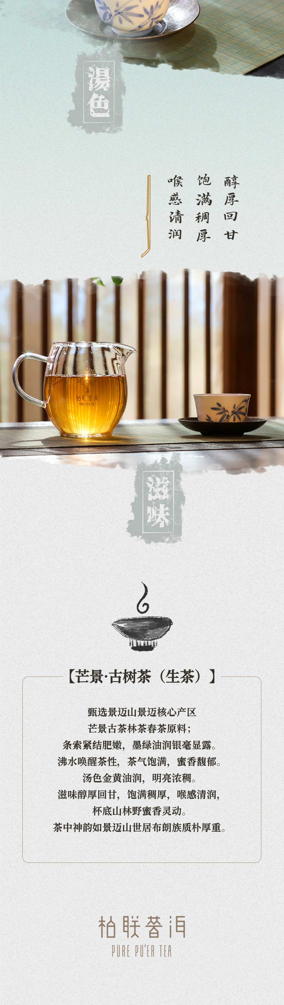 柏联普洱 2023年景迈山 芒景 古树茶生茶 古茶林茶春茶原料 饼茶 紧压茶357g