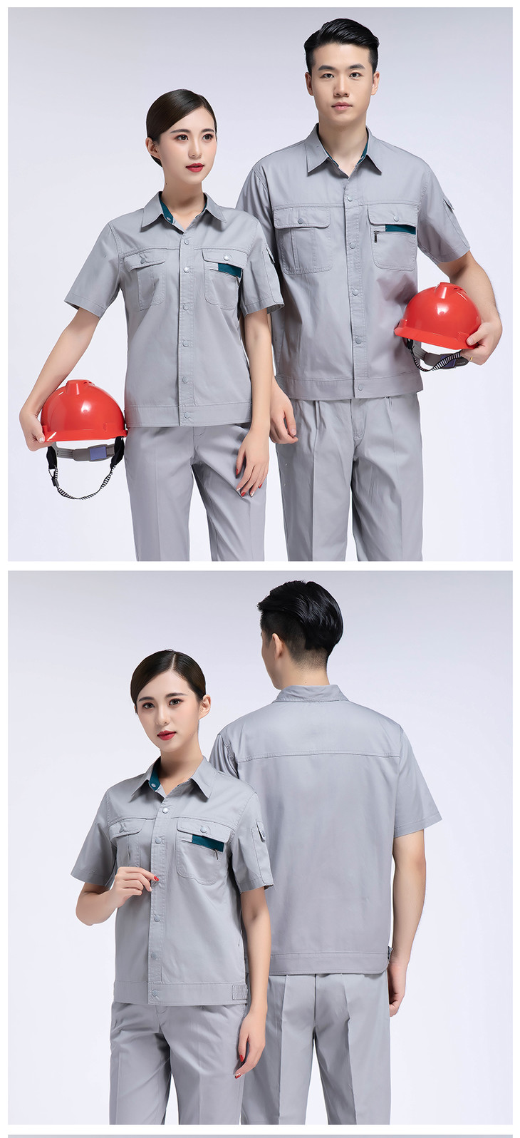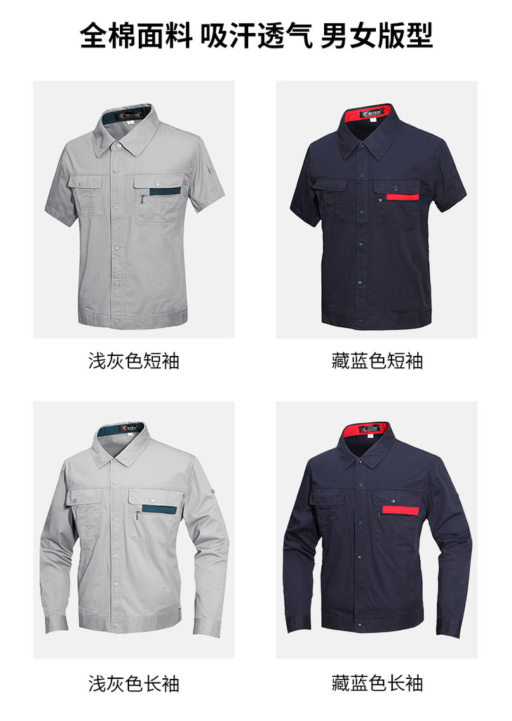 ※温馨提示:本款夏季工作服面料为100%纯棉,适合夏季穿着,同时提供长袖、短袖以及带反光条款,亲可以根据需要再颜色分类中选择。由于是夏季工作服,选择舒适薄款面料。