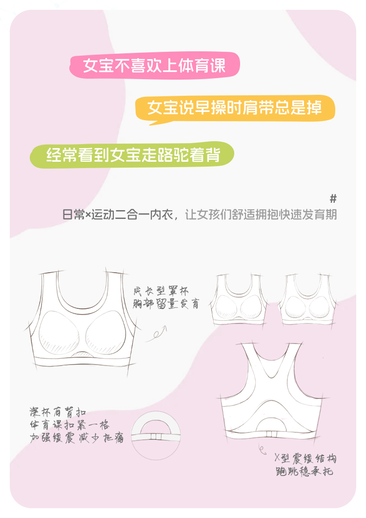 [小轻风]日常运动二合一少女童内衣发育透气速干背心