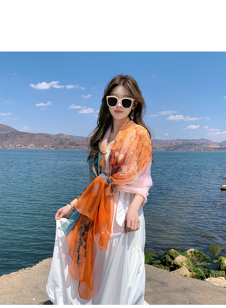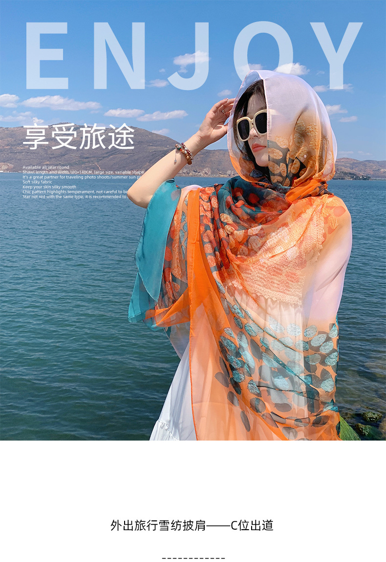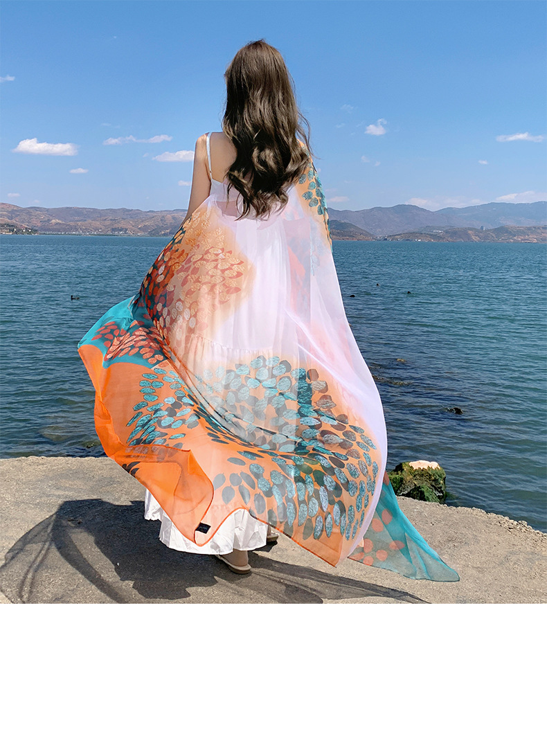 【超美❗️沙滩裙海边披肩】颜值担当「防嗮还出片」靓丽旅行气质风,女薄款防晒外搭民族风旅游配裙子纱巾丝巾L
