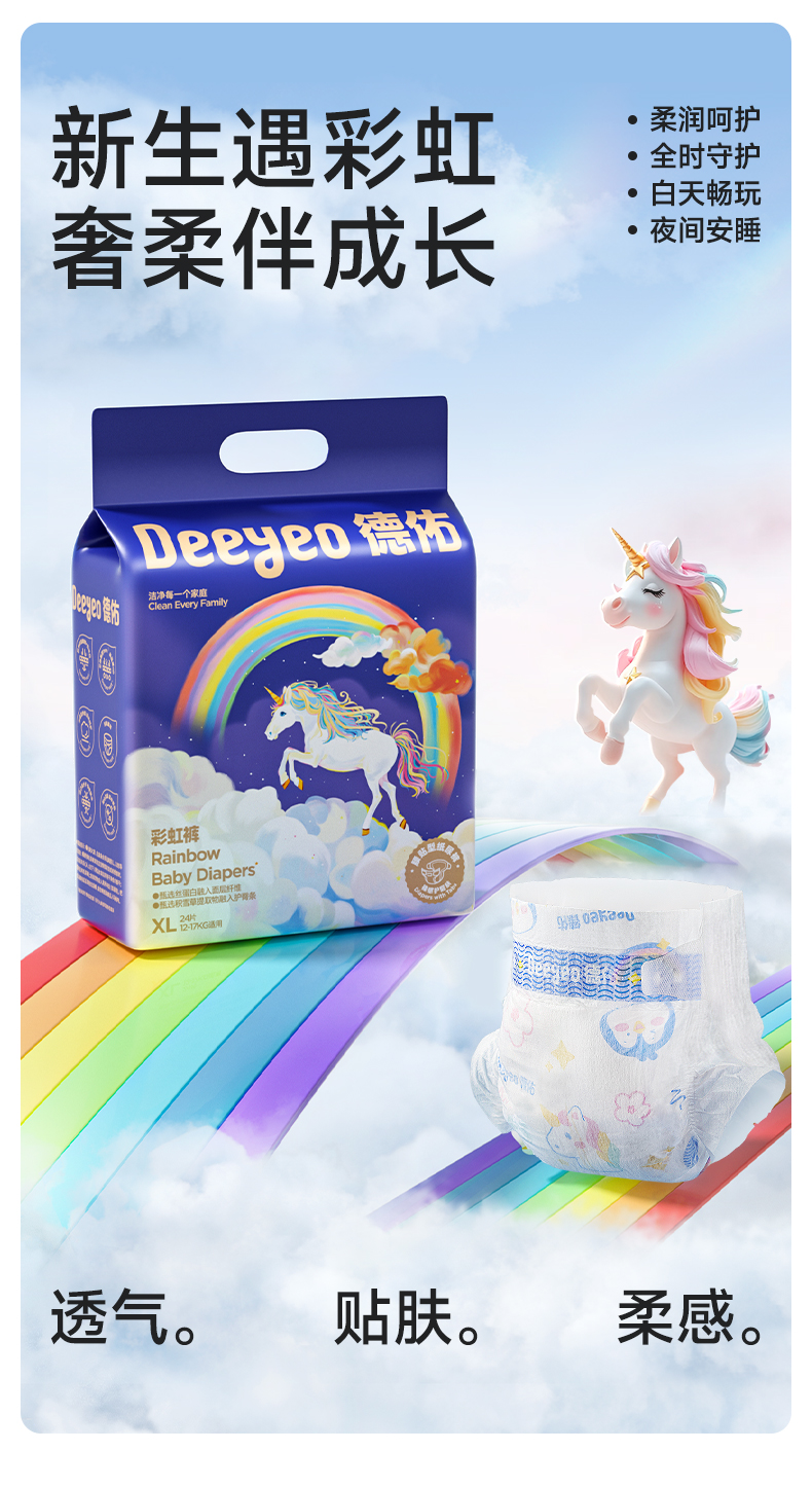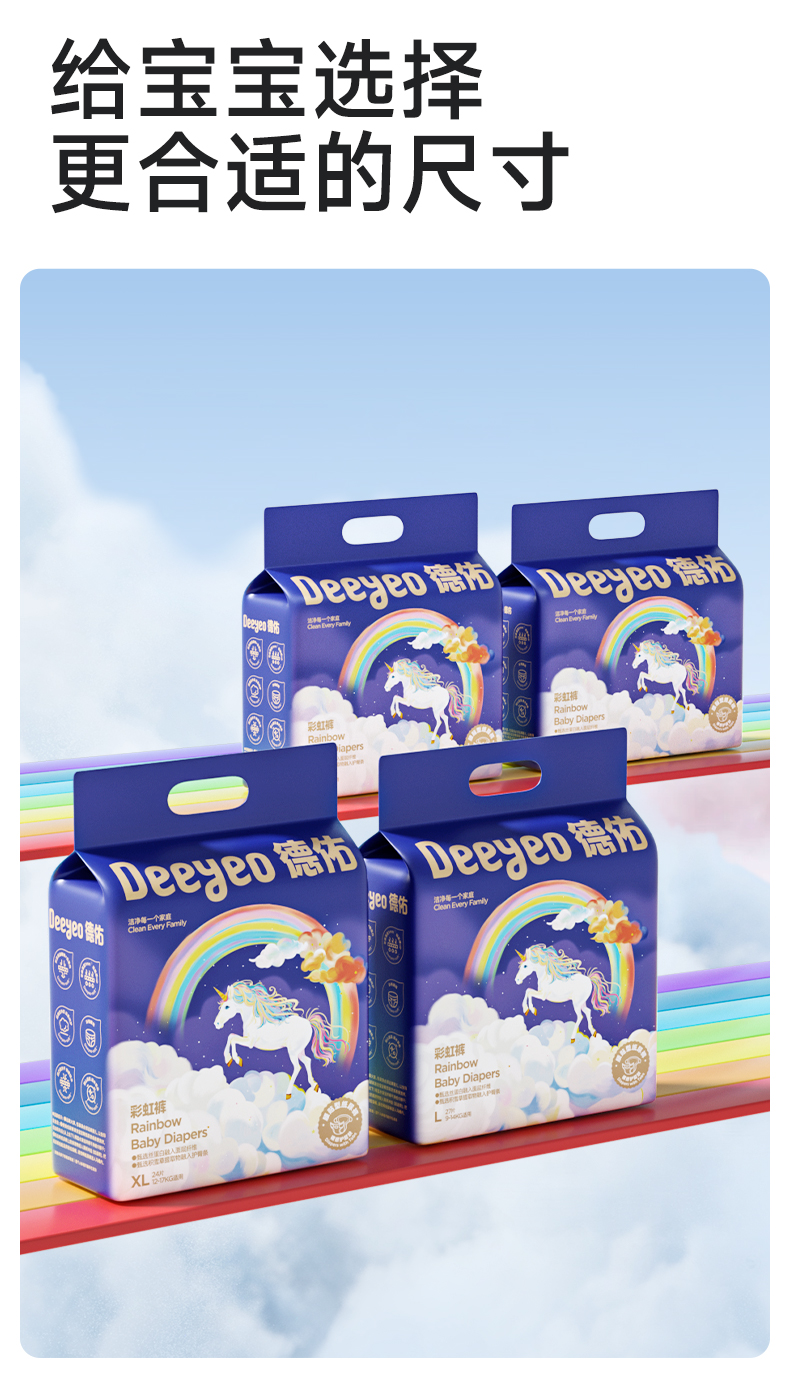【GX】纸尿裤·德佑新生儿超薄透气彩虹裤独角兽款1包2包smlxl