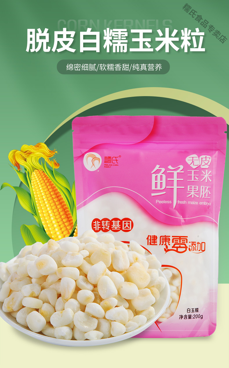 糯氏脱皮白糯玉米粒东北粘嫩冷冻去皮新鲜甜糯玉米果胚芽 200g/袋
