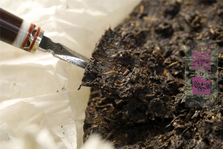由于饼型紧压,拆茶难度较大。宜选用薄片型茶刀,从侧面入手,可以撬下较为完整的茶块。