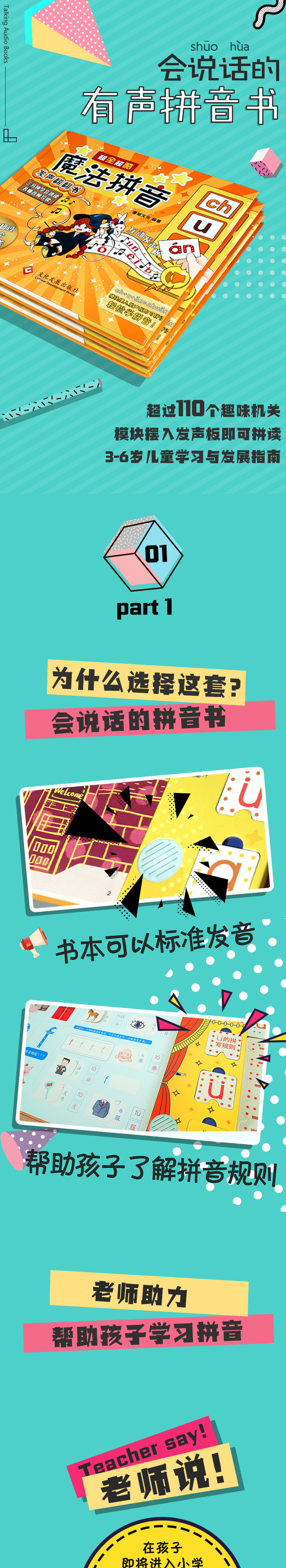 超全超酷《魔法拼音发声翻翻书》 3-6岁儿童拼音闪卡64张 赠书15节视频课