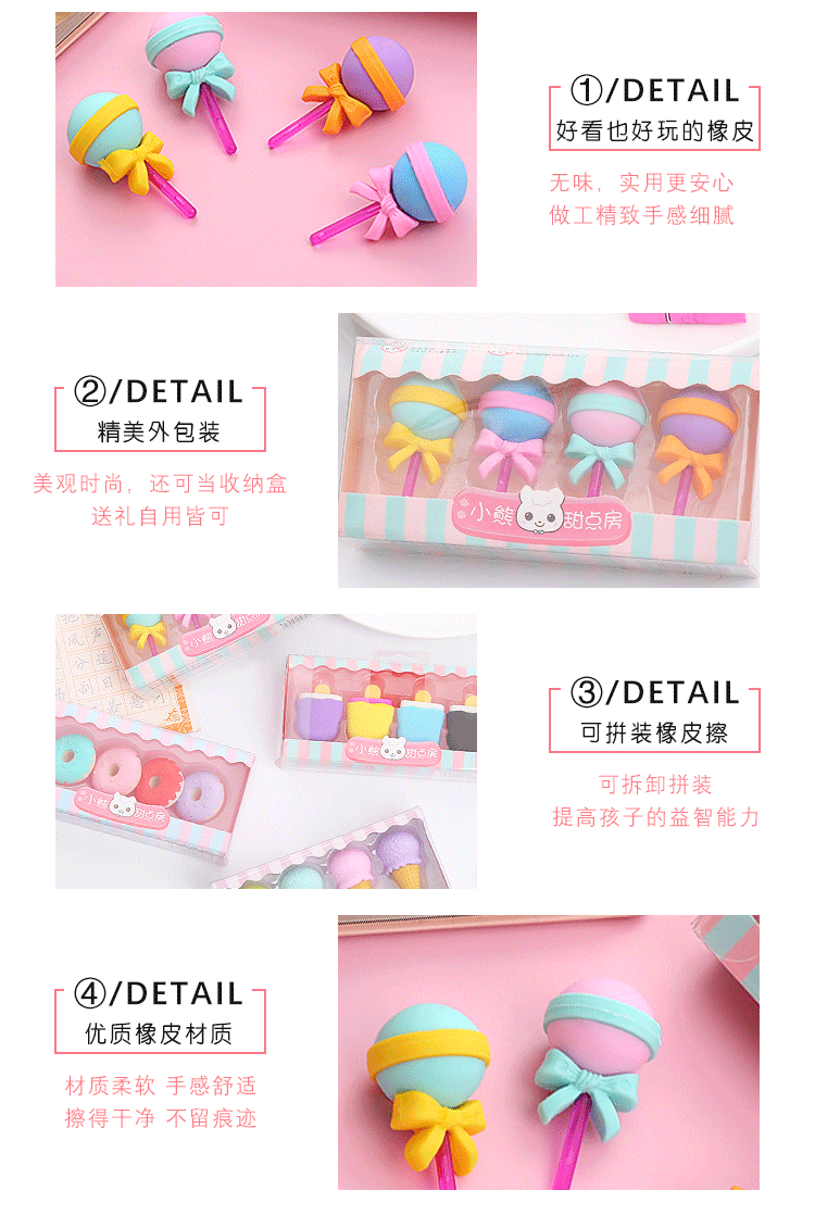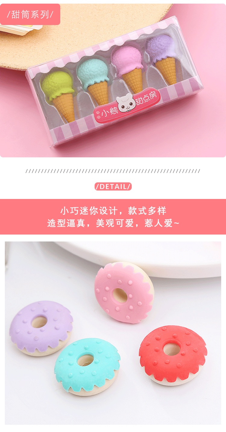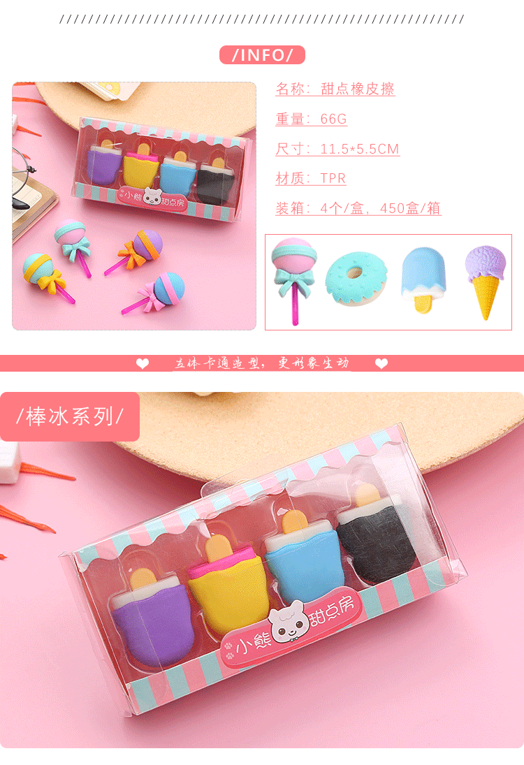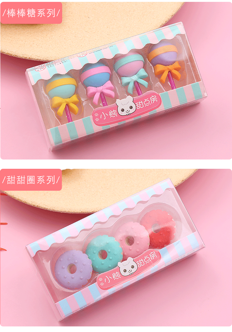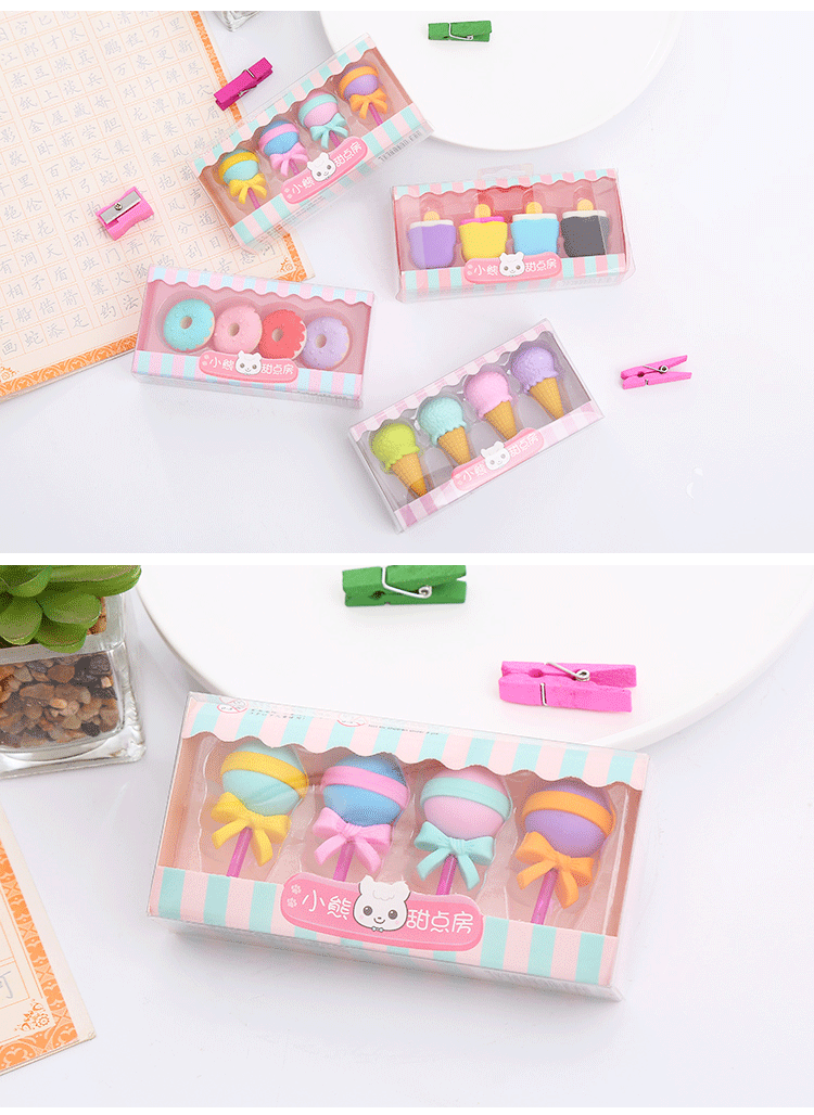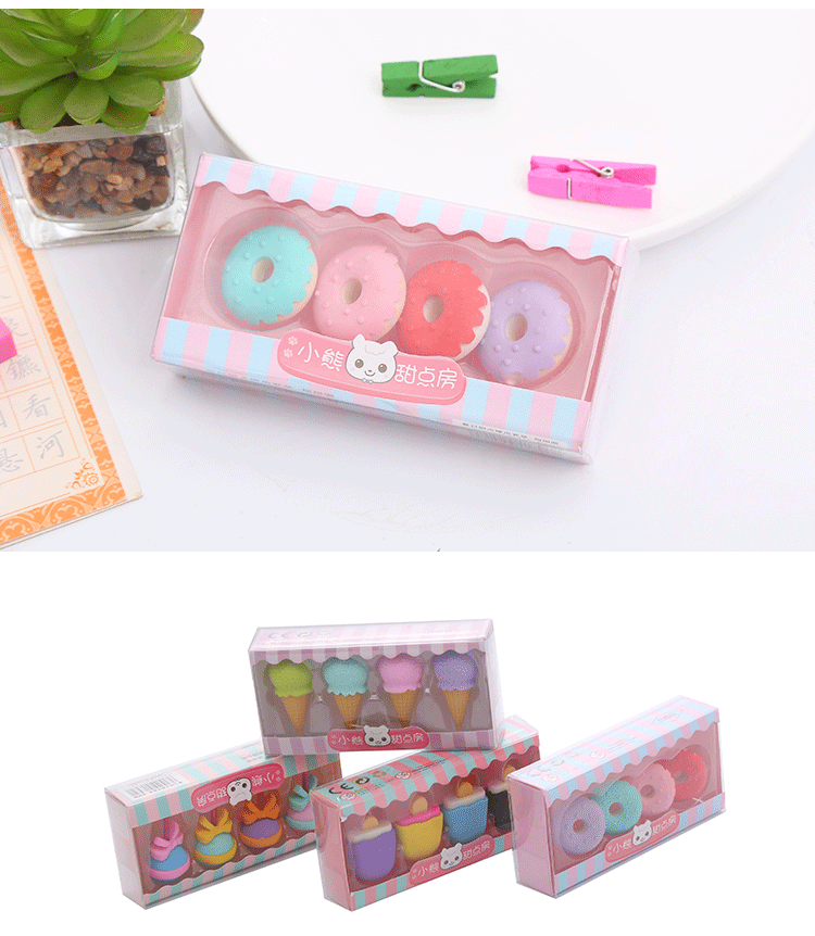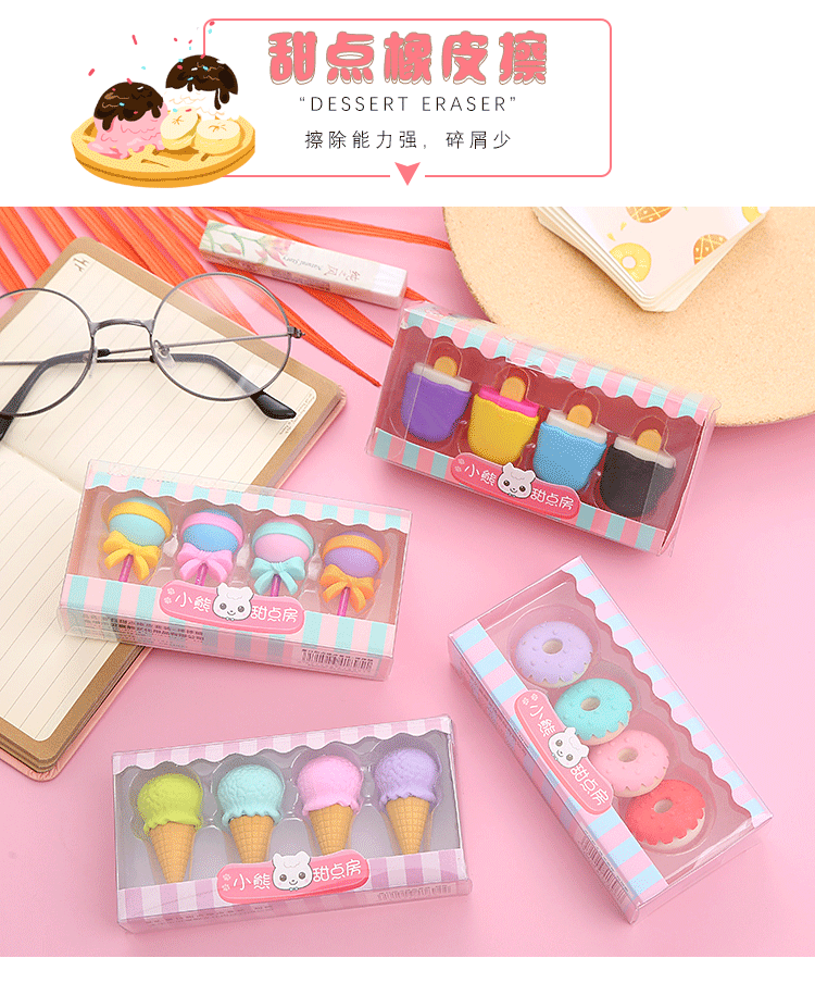 卡通甜点橡皮擦盒装可爱学生儿童奖品礼物绘画橡皮学习文具橡皮擦