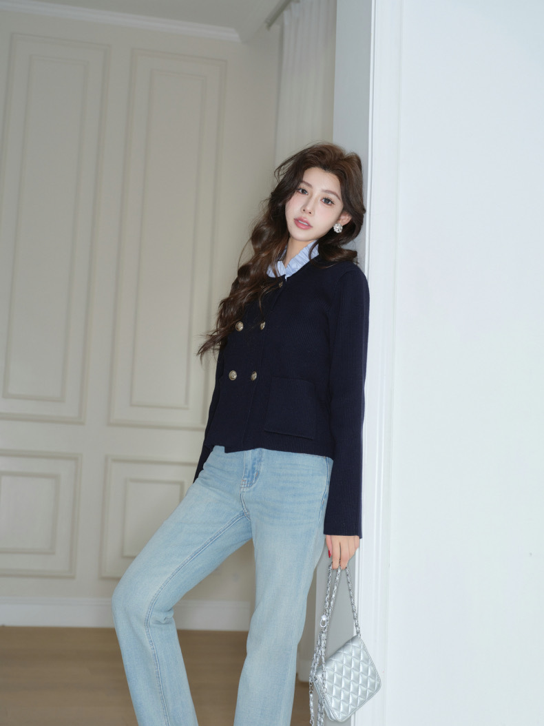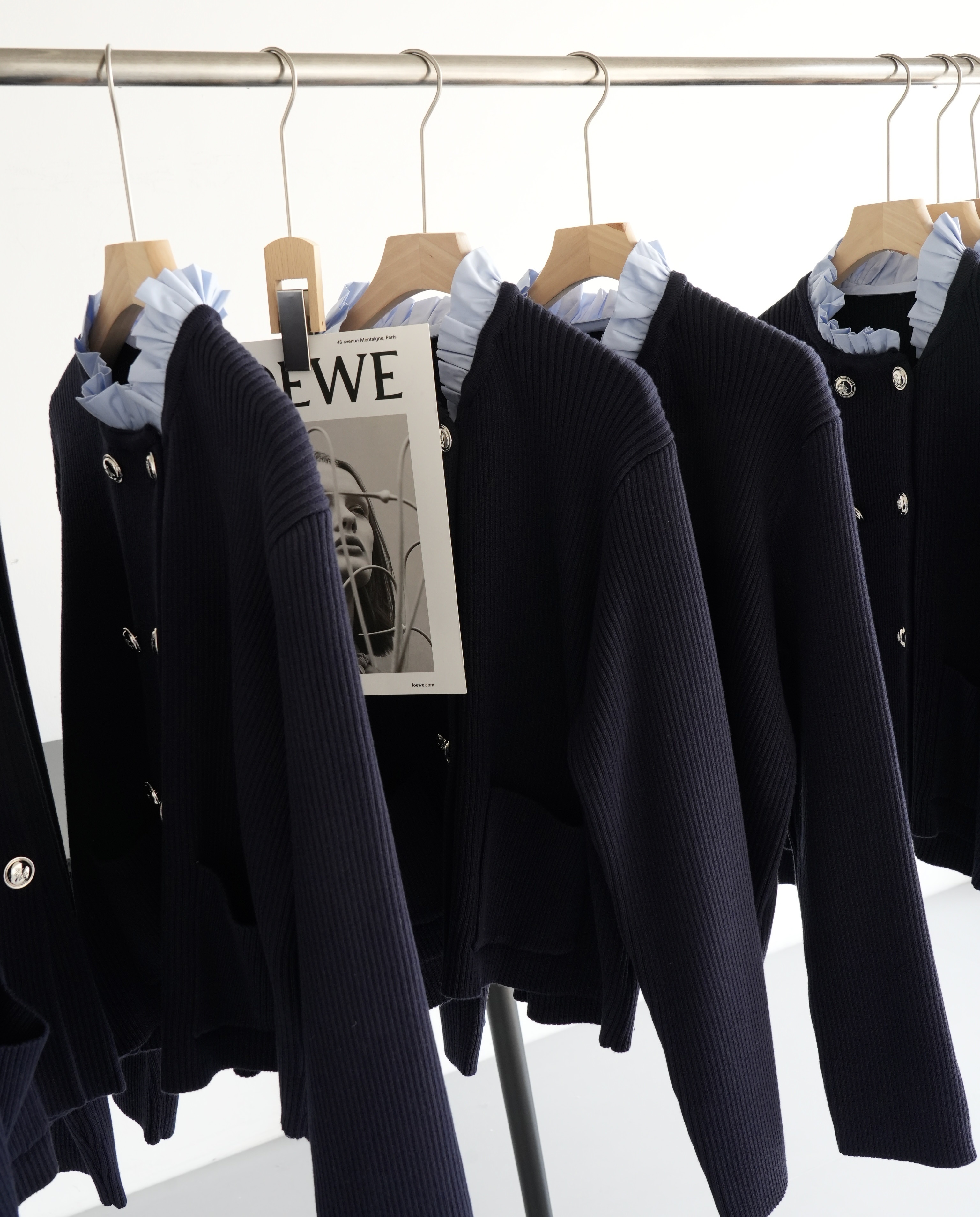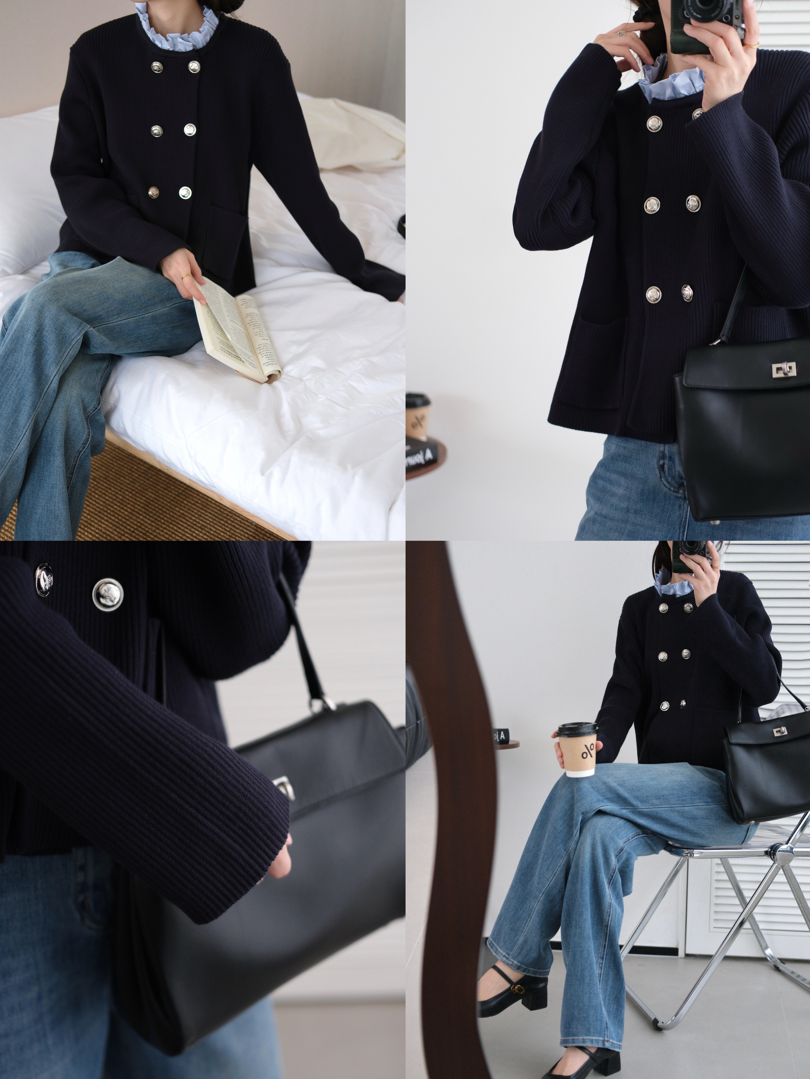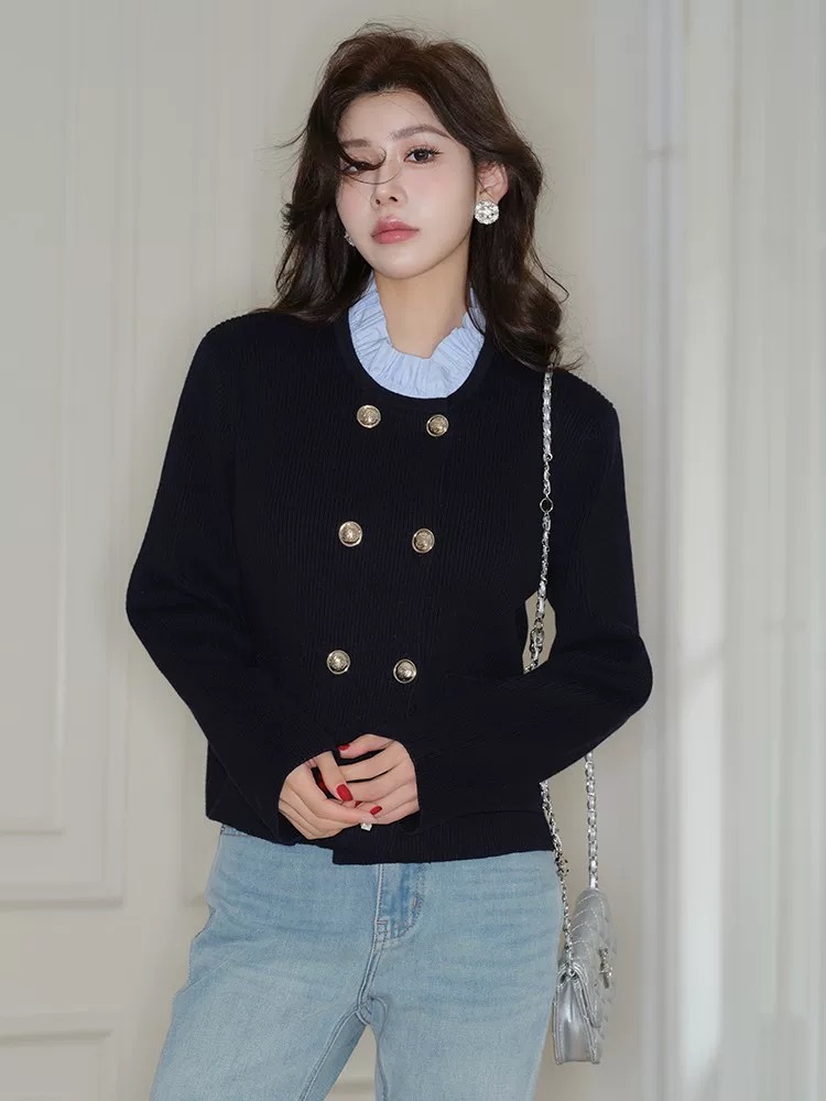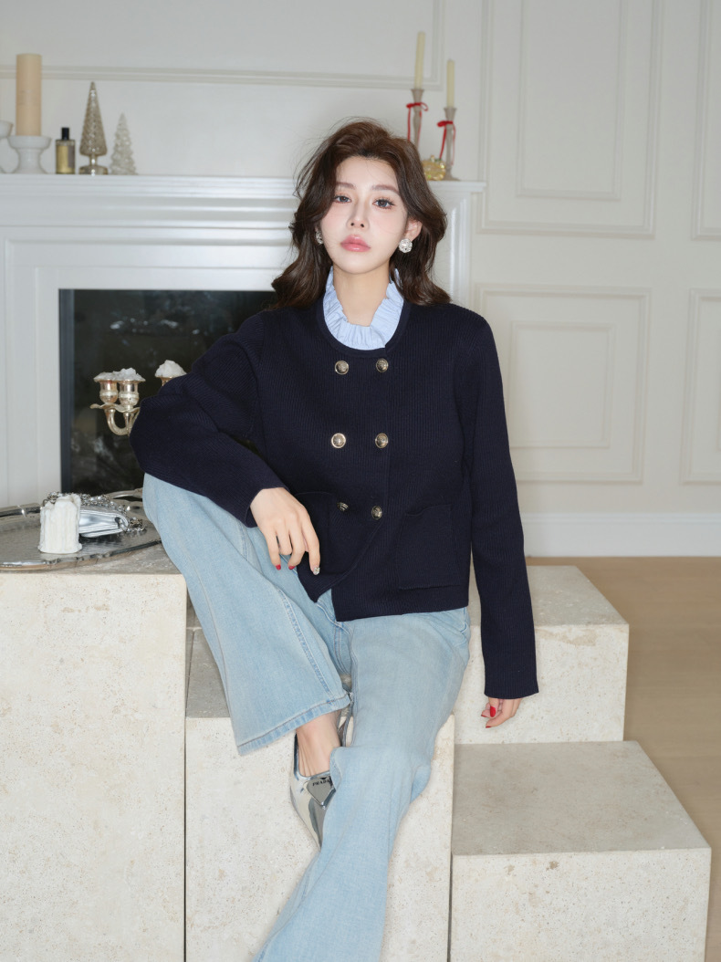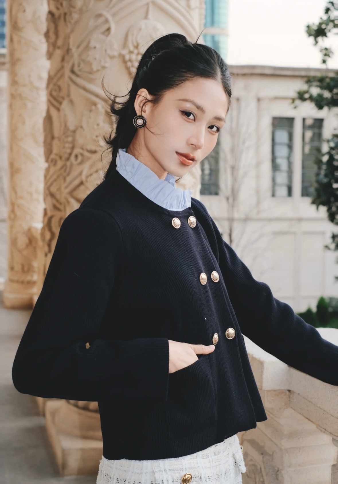 可拆卸花边领➕浮雕双排纽扣,贵气老钱感。通勤日常休闲百搭。